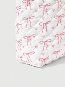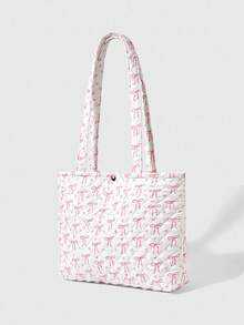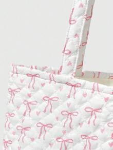 Kawaii 1 pieza Bolso de mano de mujer con estampado de lazo y bordado de rombo, de moda y portátil