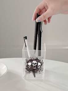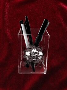 1 pieza Bote para lápices esqueleto & con estampado de flor