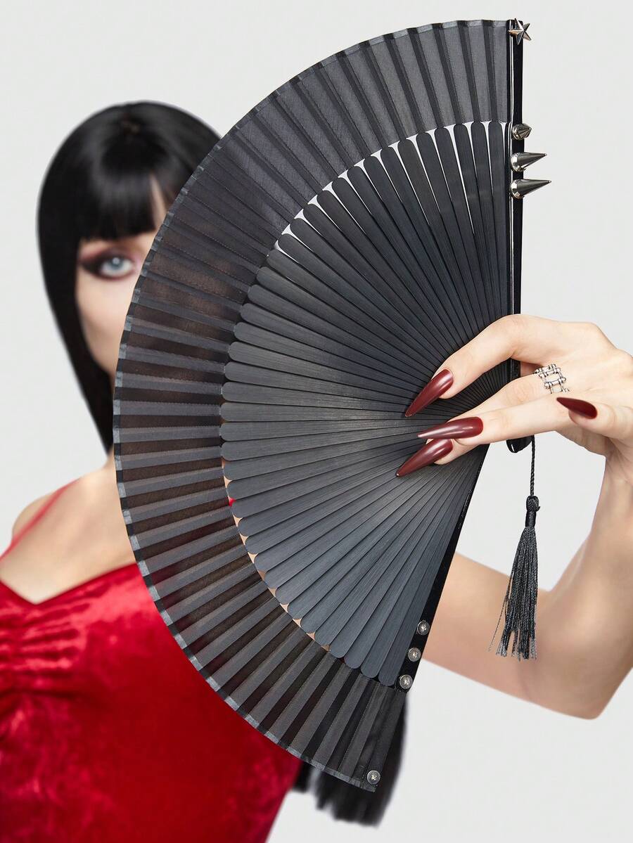 Goth 1 pieza Abanico plegable tachuela con diseño de fleco de color mixto