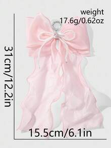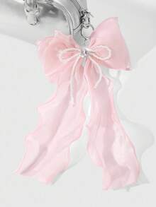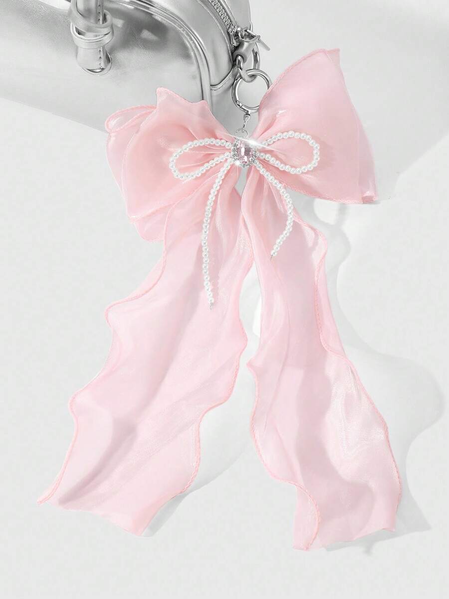 Kawaii 1 pieza Estilo coreano dulce y versátil, hecho a mano con perlas blancas, lazo de malla brillante rosa como decoración de llavero/colgante de bolso, adecuado para mujeres, niñas, regalo