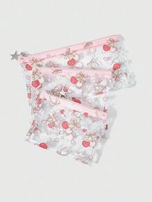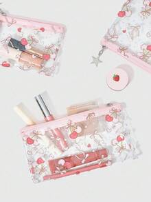 Kawaii 1 pieza Bolsa de cosméticos de moda con decoración de lazo y cereza transparente de PVC 1263600