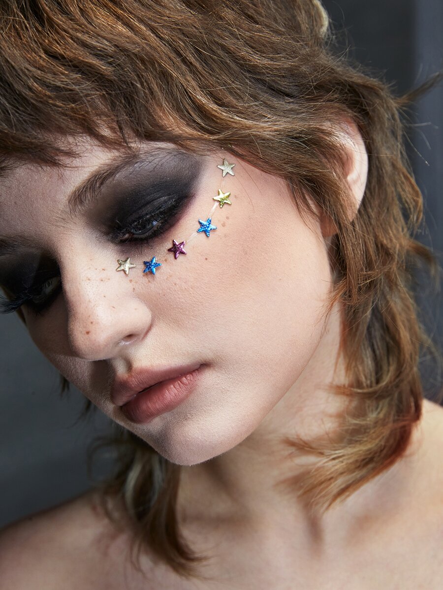 Grunge Punk 1 hoja Pegatina tatuaje facial con diamante de imitación al azar