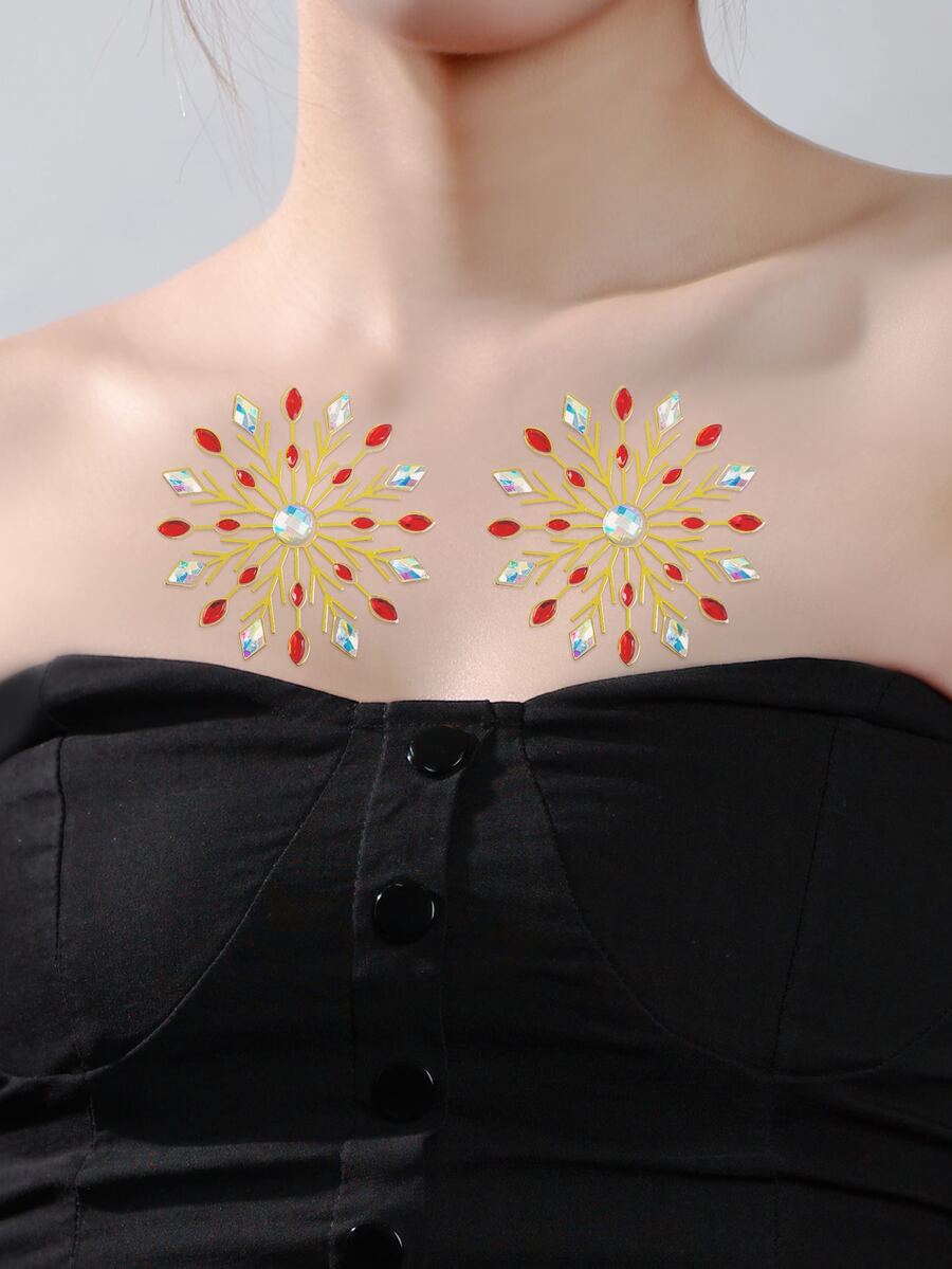 1 hoja Adhesivo de tatuajes en pecho con diamante de imitación