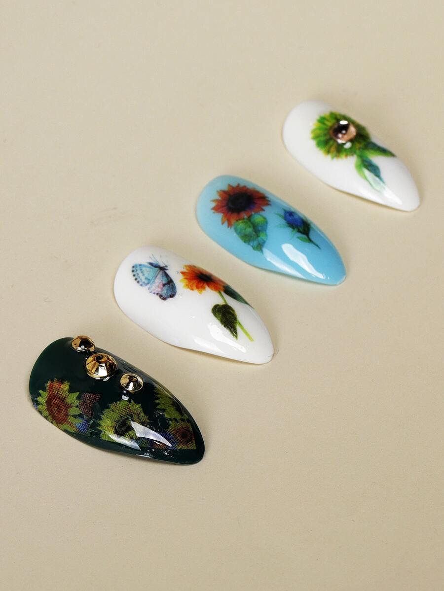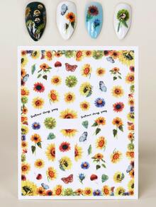 1 hoja Pegatina de arte de uña con estampado de girasol