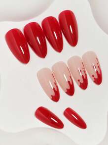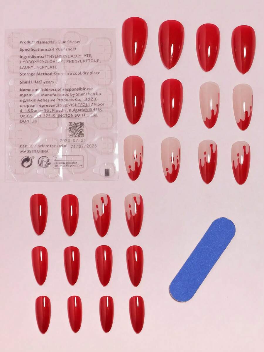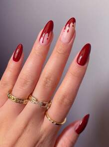 24 piezas Uñas postizas almendra en forma de con sangre goteo diseño , gel gelatina incluido