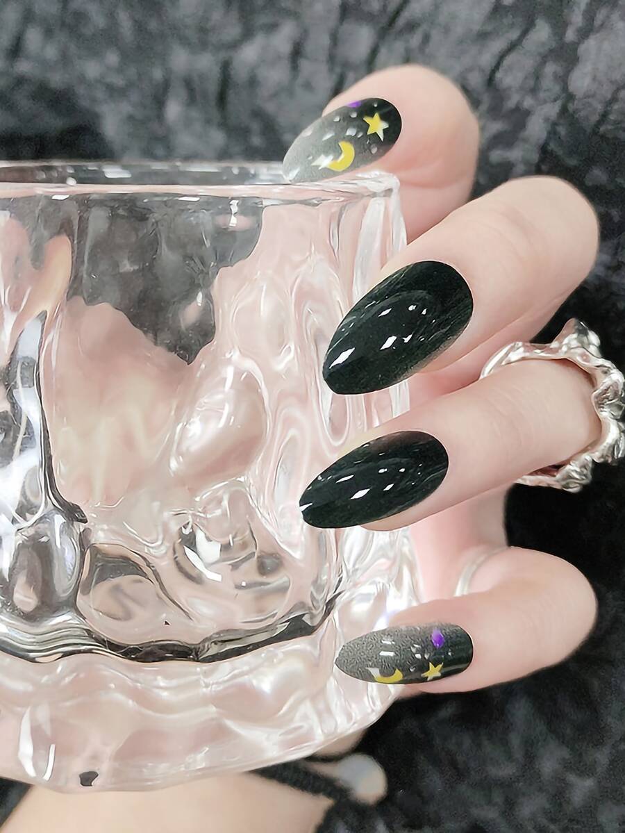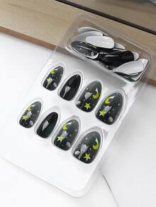 24 piezas almendra con patrón de estrella y luna Uña postiza & 1 hoja cinta