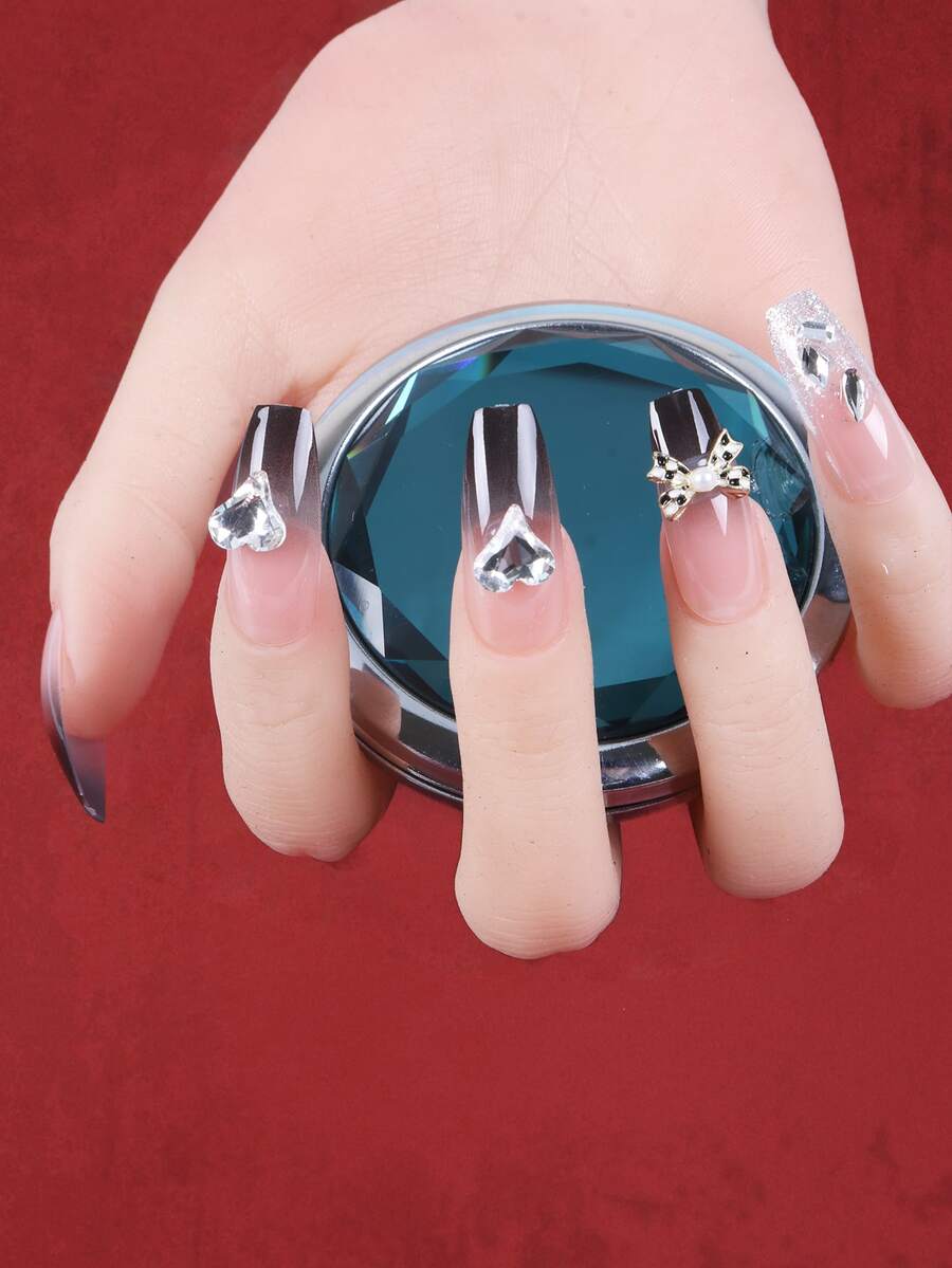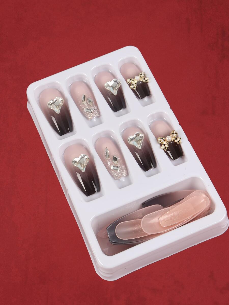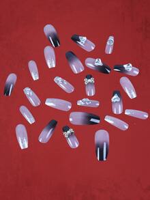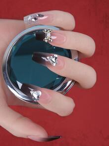 24 piezas ataúd 3d con adorno de corazón Uña postiza & 1 pieza lima de uñas & 1 hoja cinta