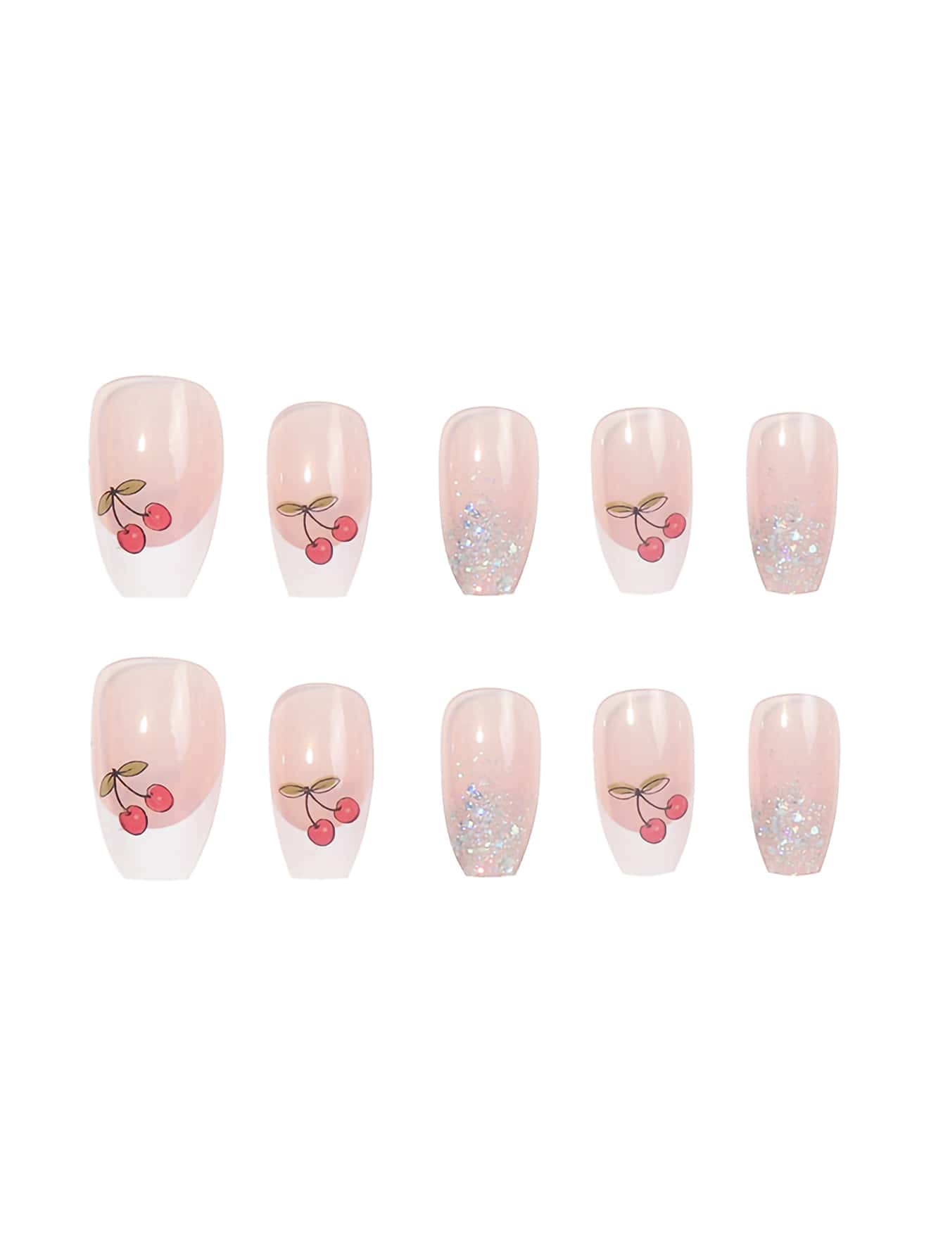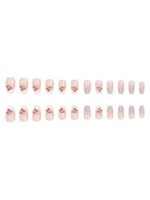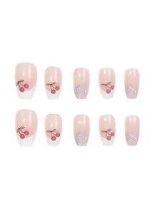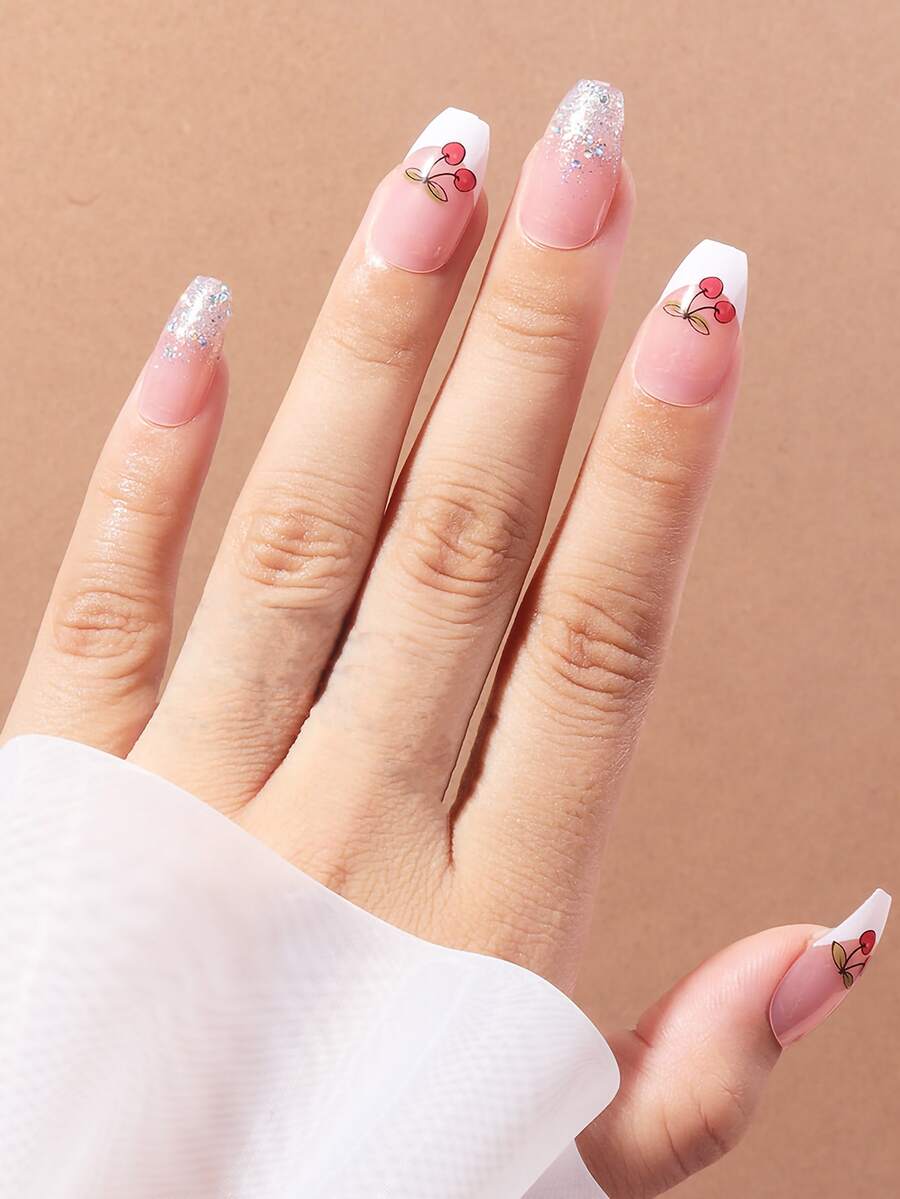 24 piezas ataúd con estampado de cereza Uña postiza & 1 hoja cinta