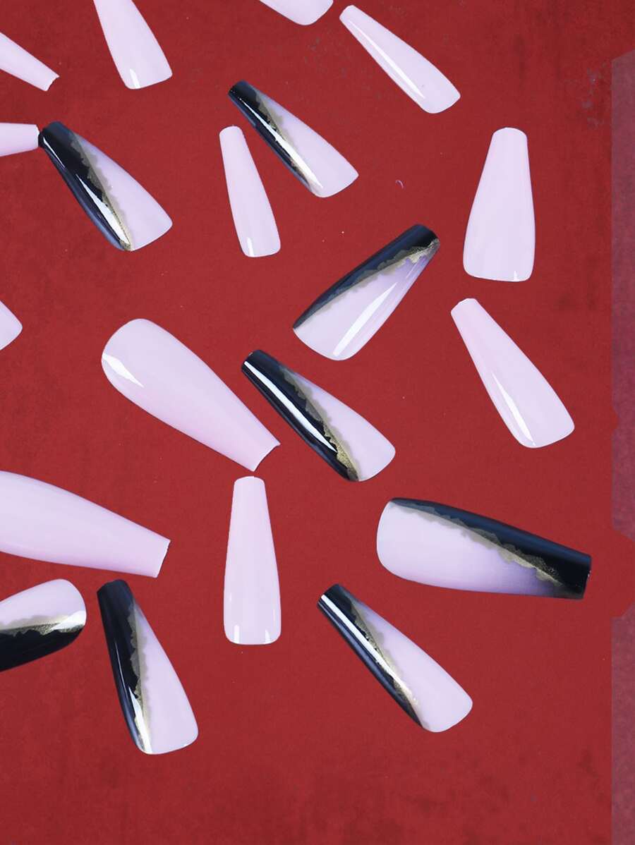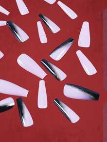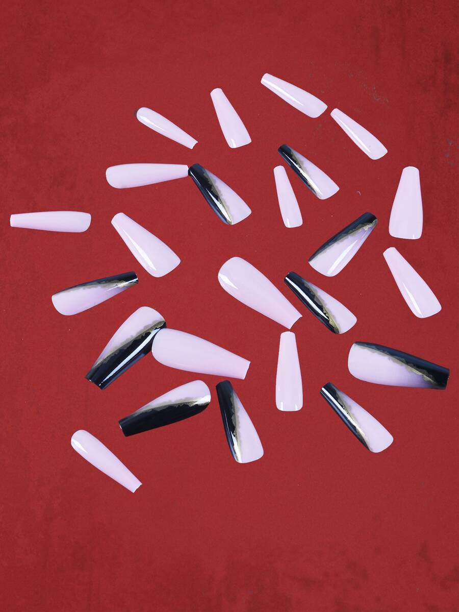 24 piezas ataúd de color combinado Uña postiza & 1 hoja cinta