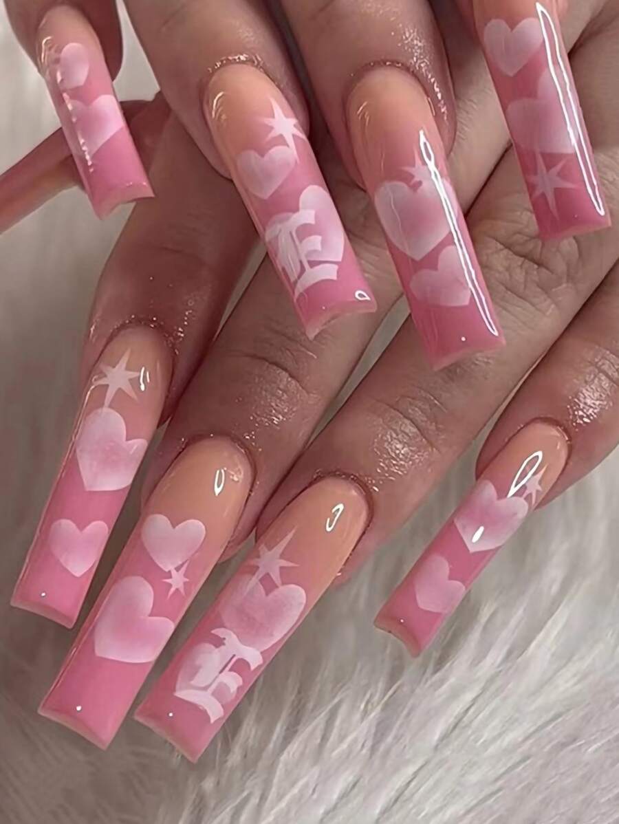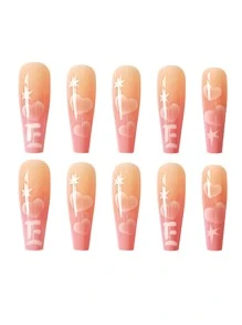 24 piezas ataúd con estampado de corazón Uña postiza & 1 hoja cinta