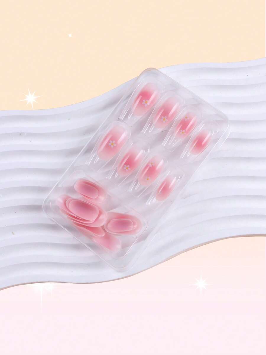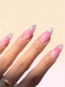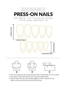 24 piezas largo almendra con patrón floral Uña postiza & 1 hoja cinta
