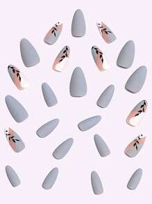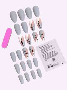 24 piezas largo almendra con patrón de hoja Uña postiza & 1 pieza lima de uñas & 1 hoja cinta