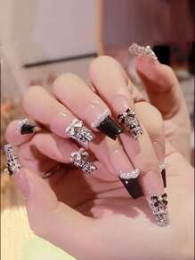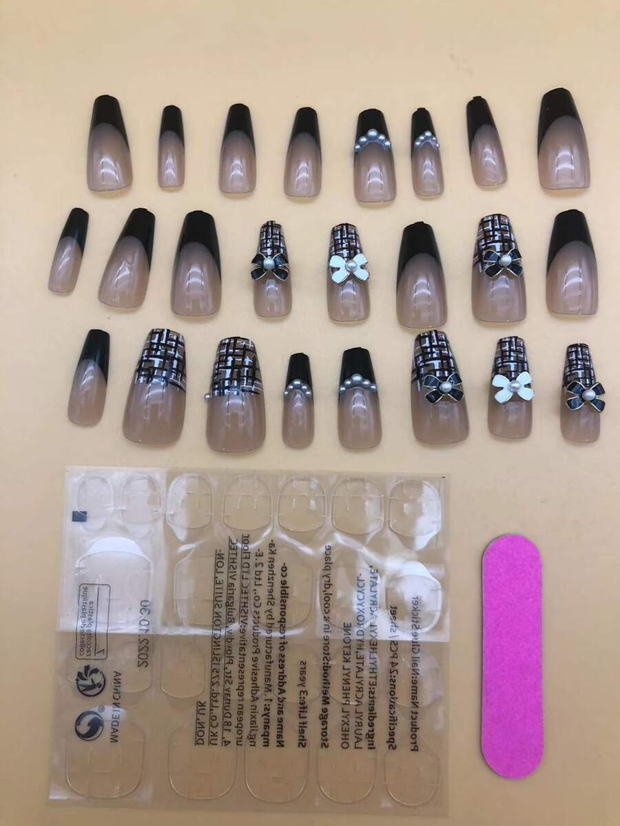 24 piezas largo ataúd 3d con diseño de lazo Uña postiza & 1 pieza lima de uñas & 1 hoja cinta