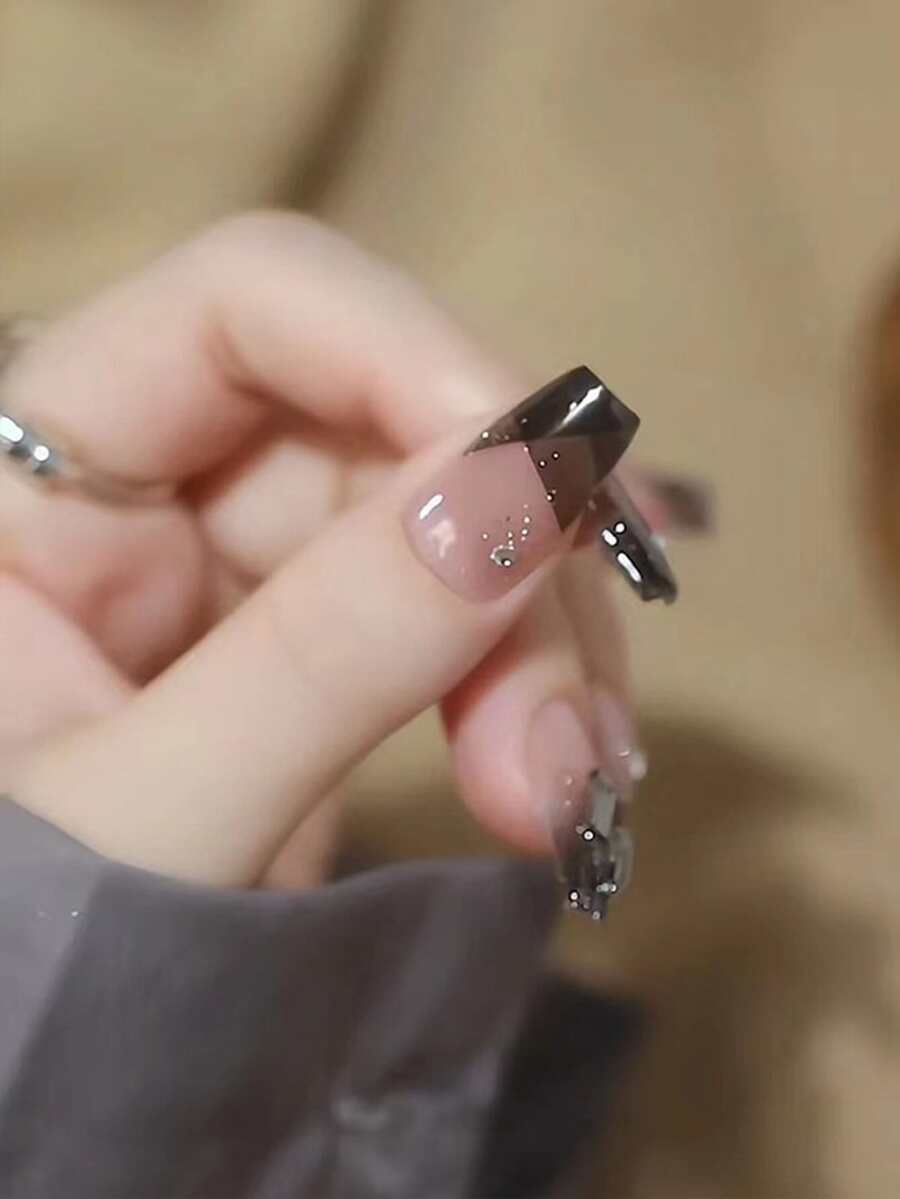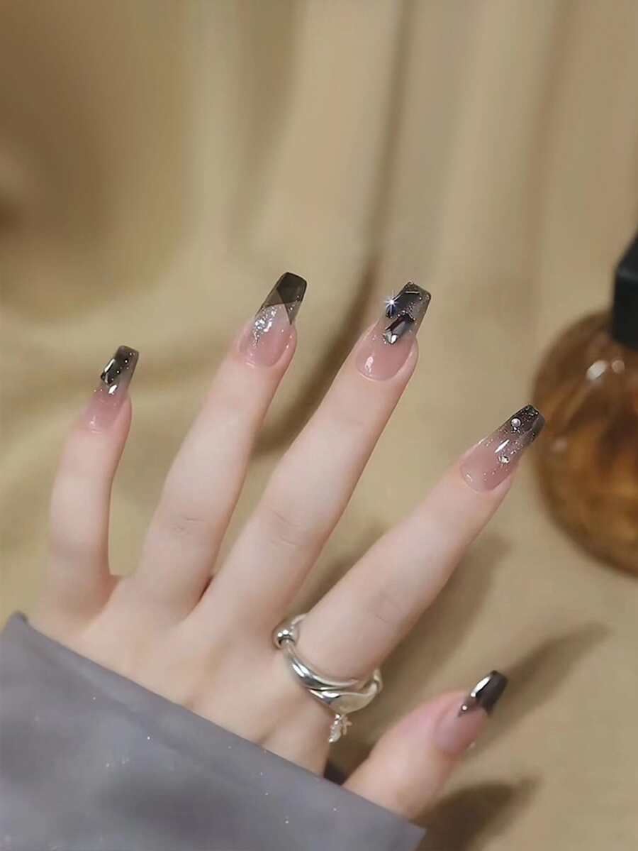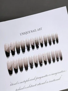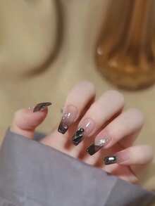 24 piezas largo ataúd 3d con diseño de diamante de imitación Uña postiza & 1 hoja cinta