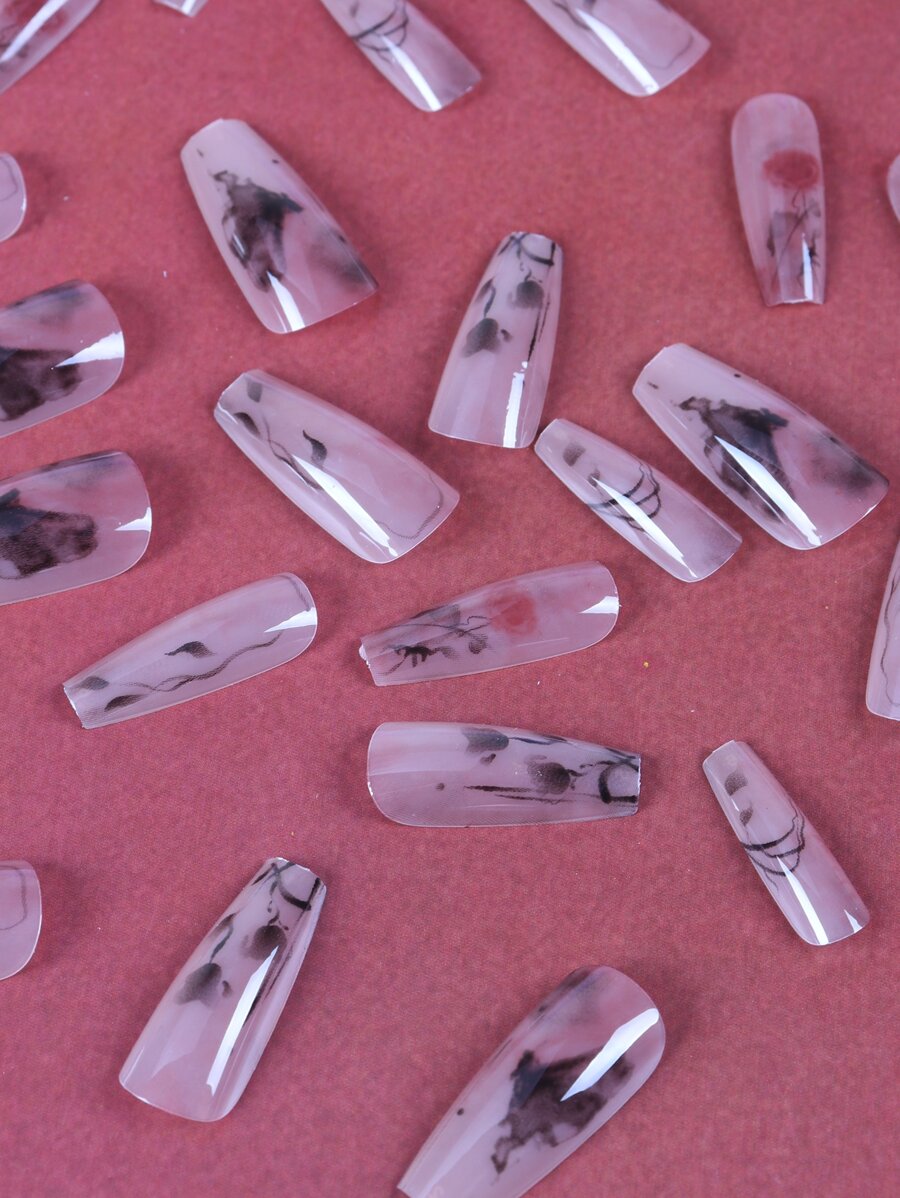 24 piezas largo ataúd con patrón floral Uña postiza & 1 hoja cinta