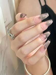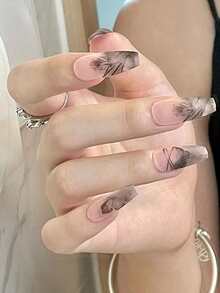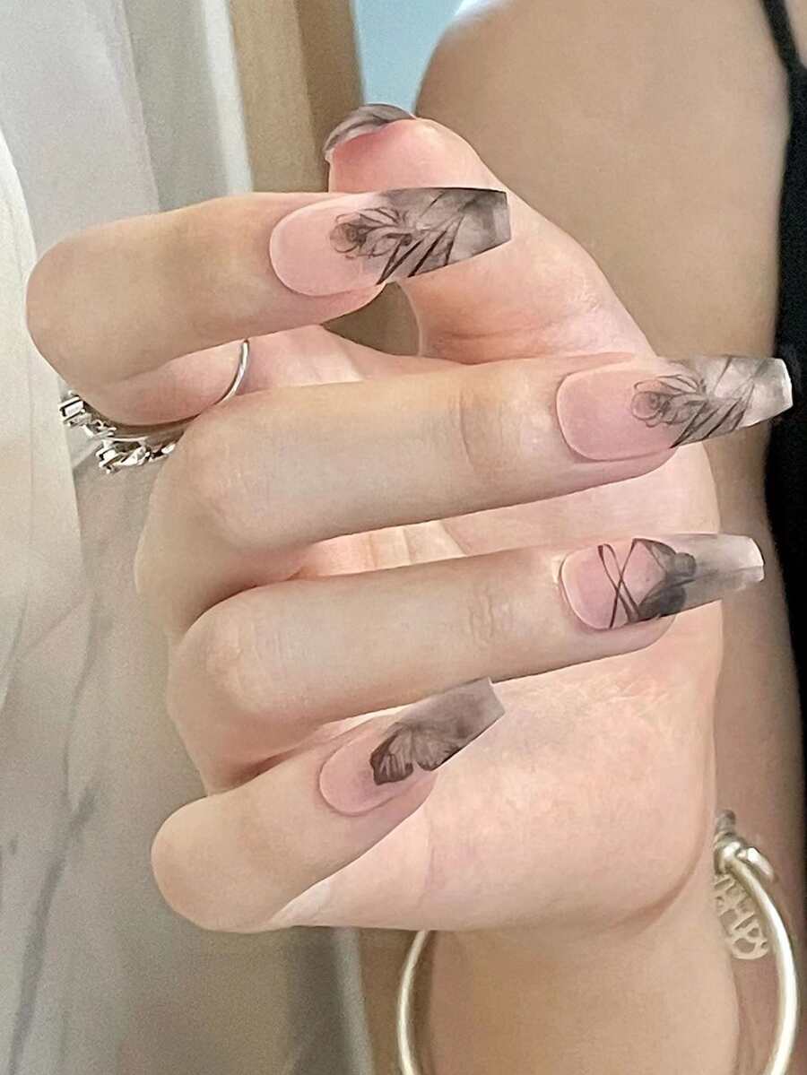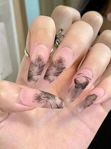 24 piezas largo ataúd con estampado de flor Uña postiza & 1 hoja cinta