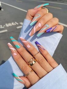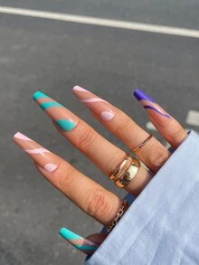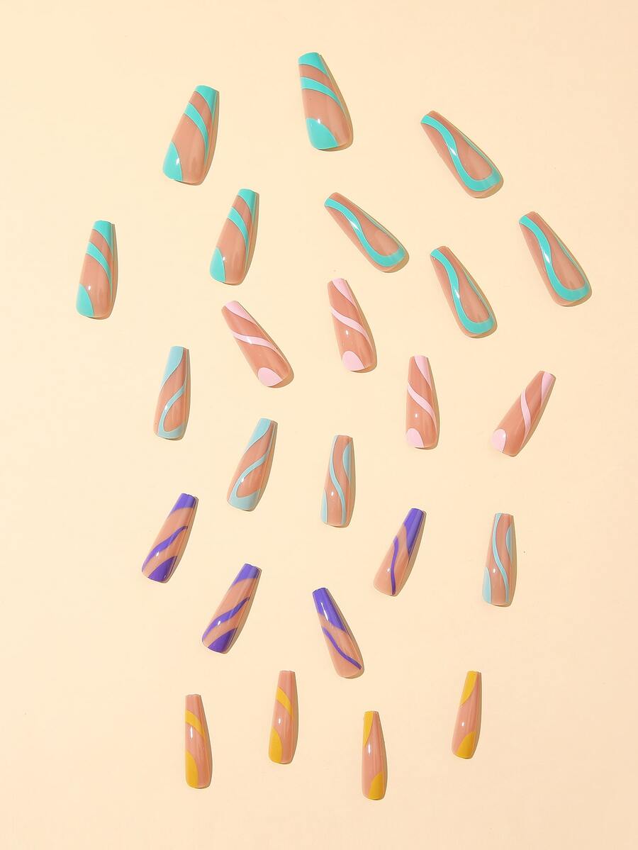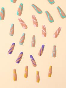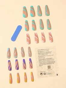24 piezas Uña postiza largo ataúd de rayas & 1 hoja cinta & 1 pieza lima de uña