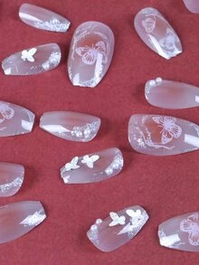 24 piezas largo oval con diseño de mariposa Uña postiza & 1 hoja cinta