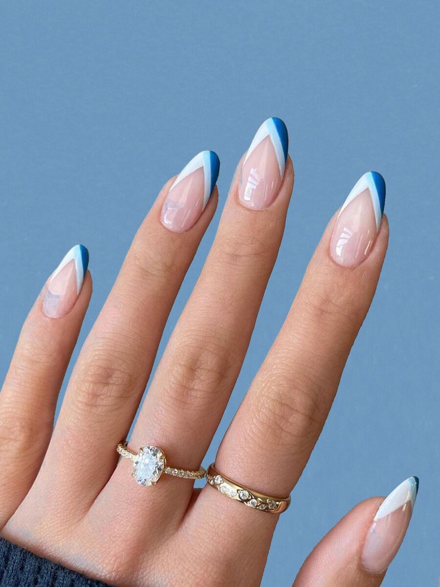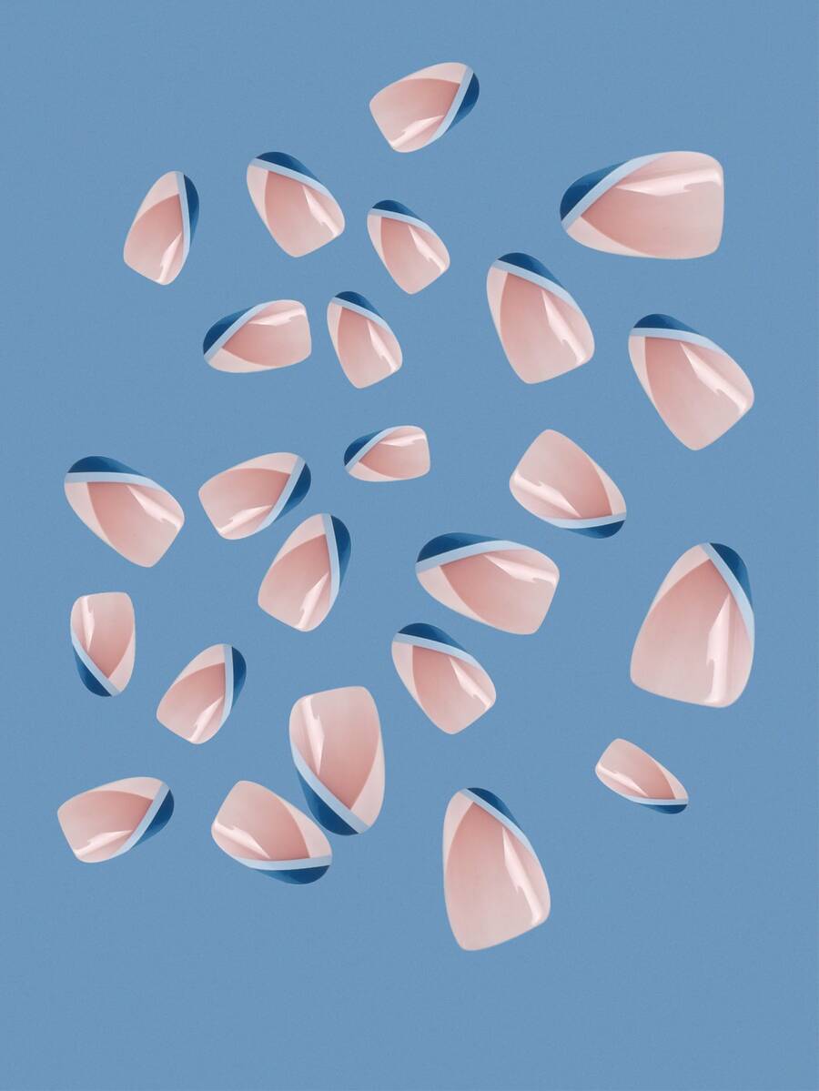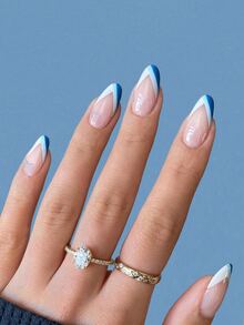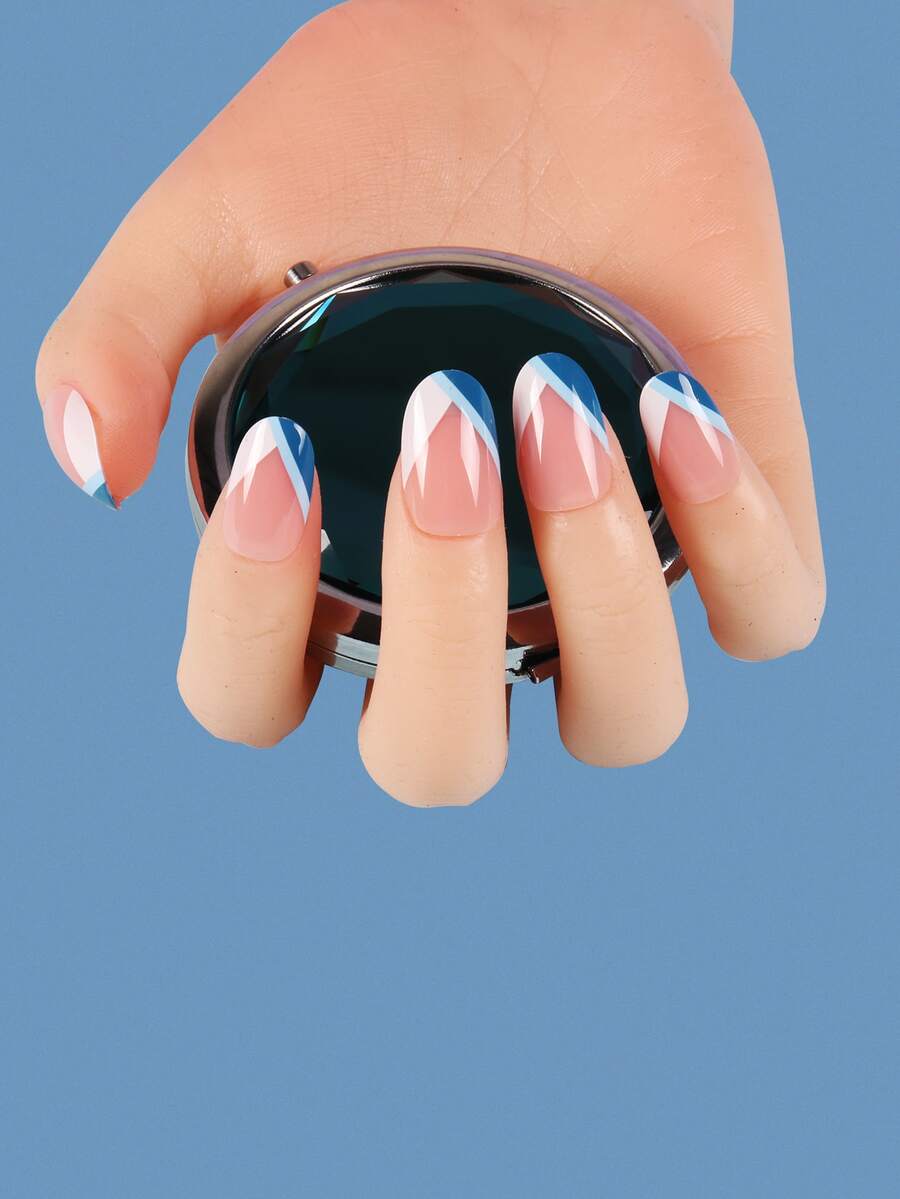 24 piezas Uña postiza largo oval de color combinado & 1 hoja cinta