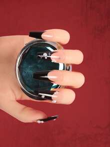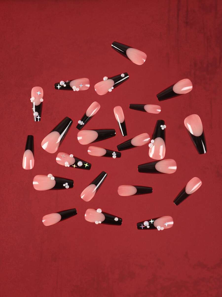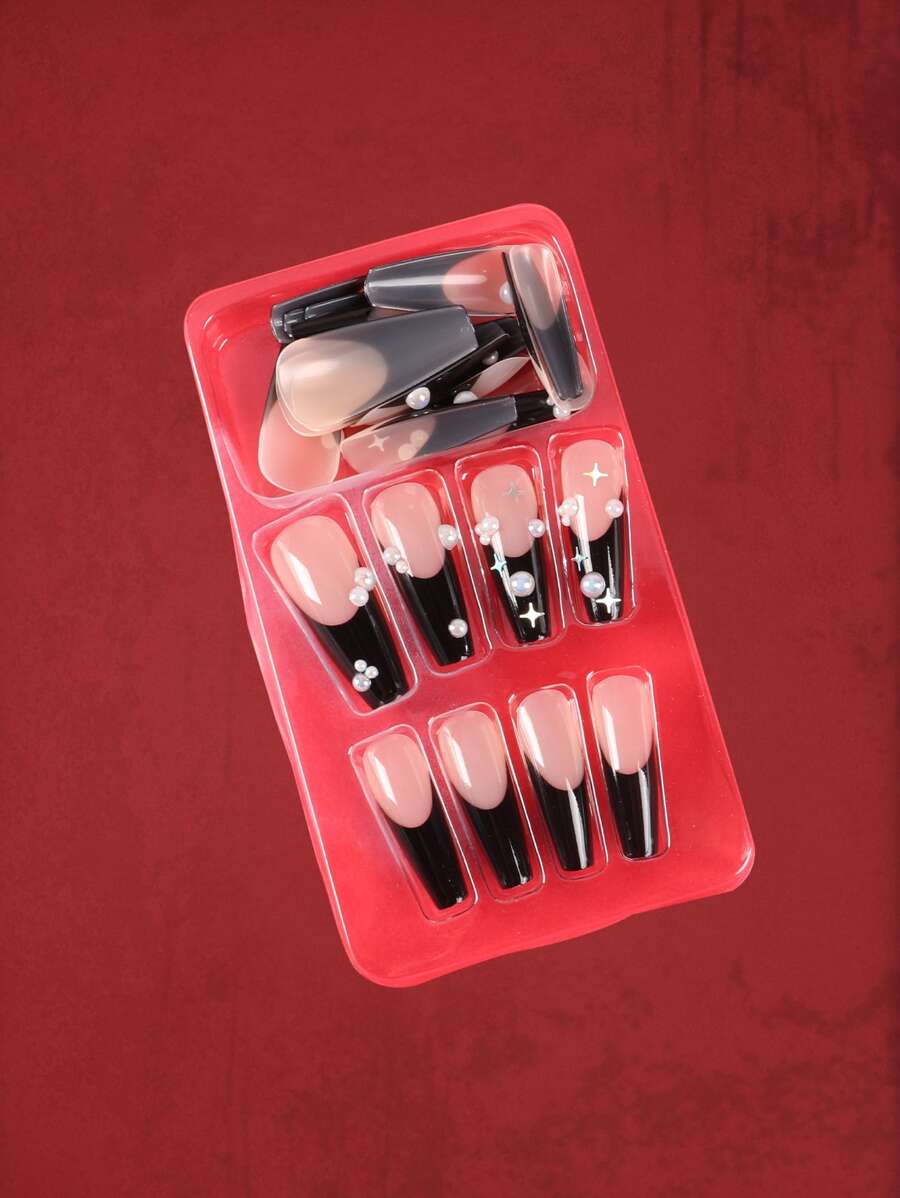 24 piezas largo cuadrado con diseño de perla artificial Uña postiza & 1 hoja cinta