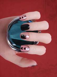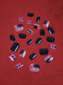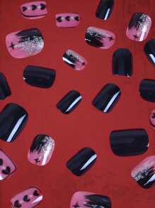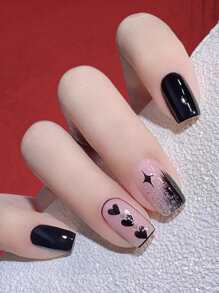 24 piezas Uña postiza largo cuadrado con patrón de corazón & 1 hoja cinta