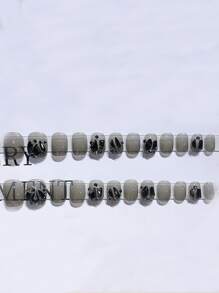 24 piezas corto cuadrado 3d con diseño de diamante de imitación Uña postiza & 1 hoja cinta