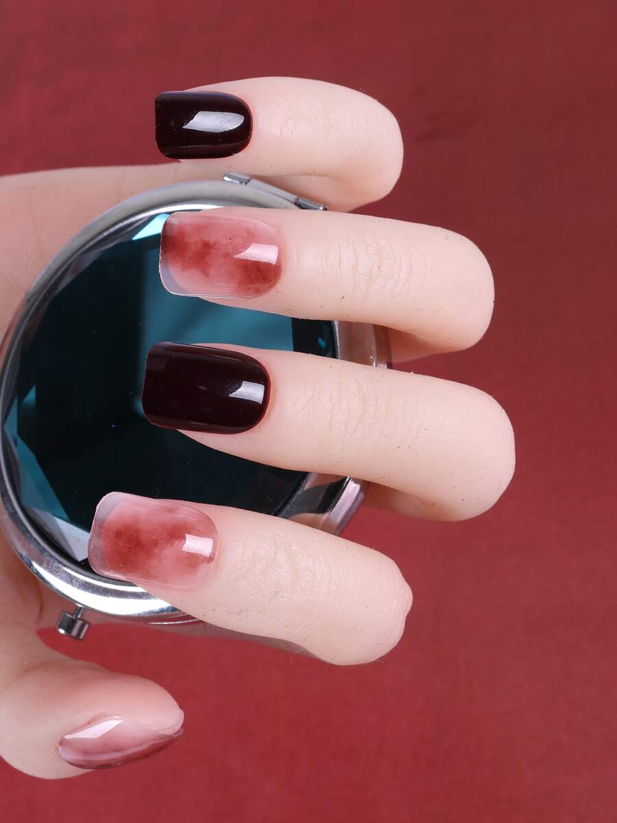 24 piezas corto Uñas postizas cuadradas & 1 hoja cinta