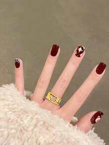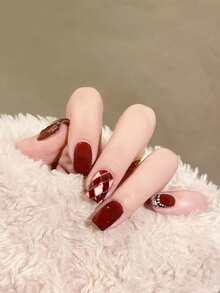 24 piezas Uña postiza corto cuadrado con patrón de cuadros & 1 hoja de cinta para uñas