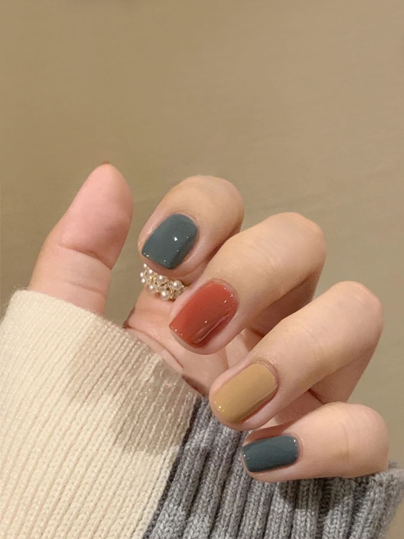 24 piezas corto cuadrado liso Uña postiza & 1 hoja cinta
