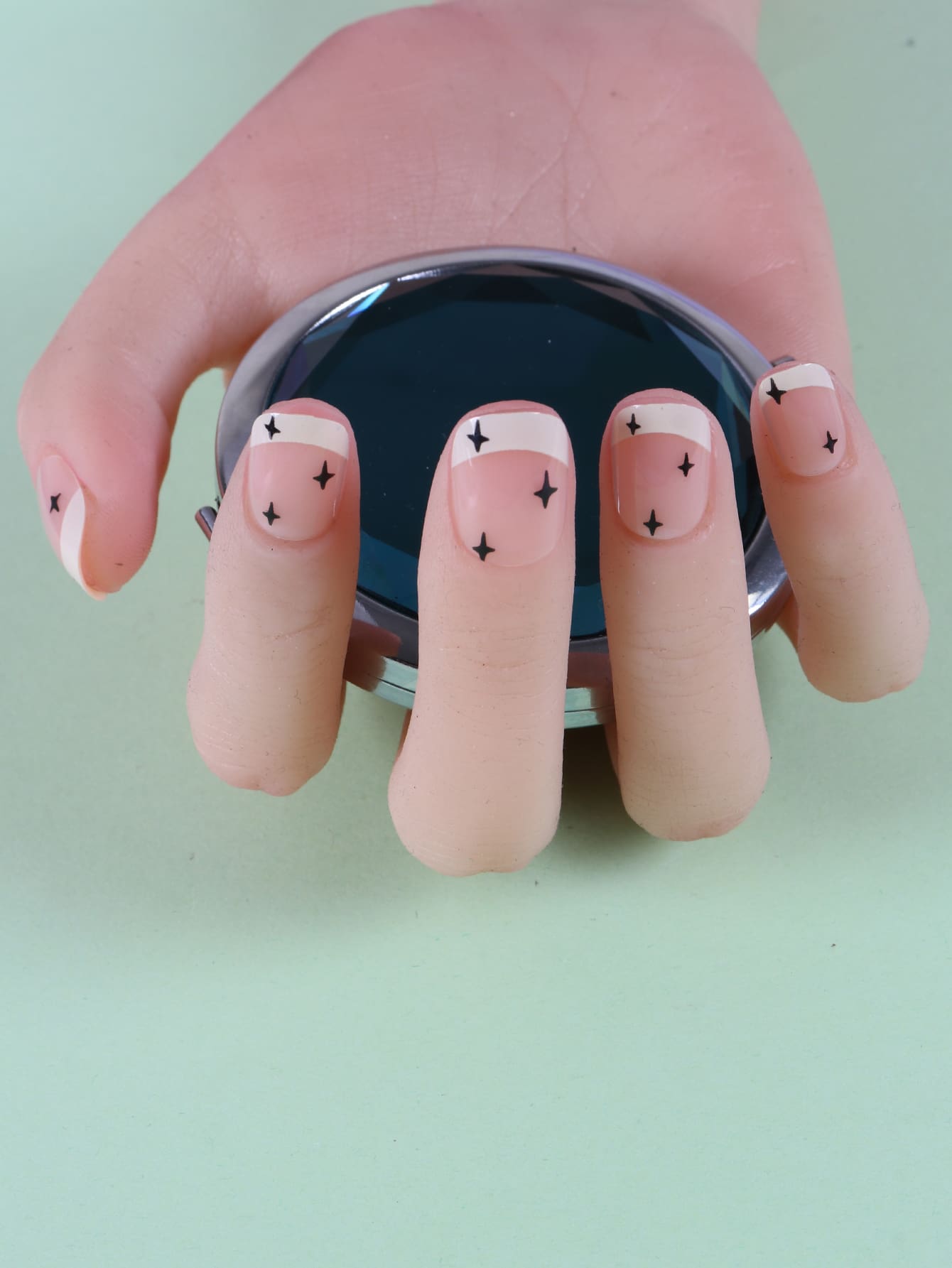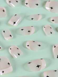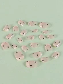 24 piezas corto cuadrado con patrón de estrella Uña postiza & 1 hoja cinta