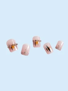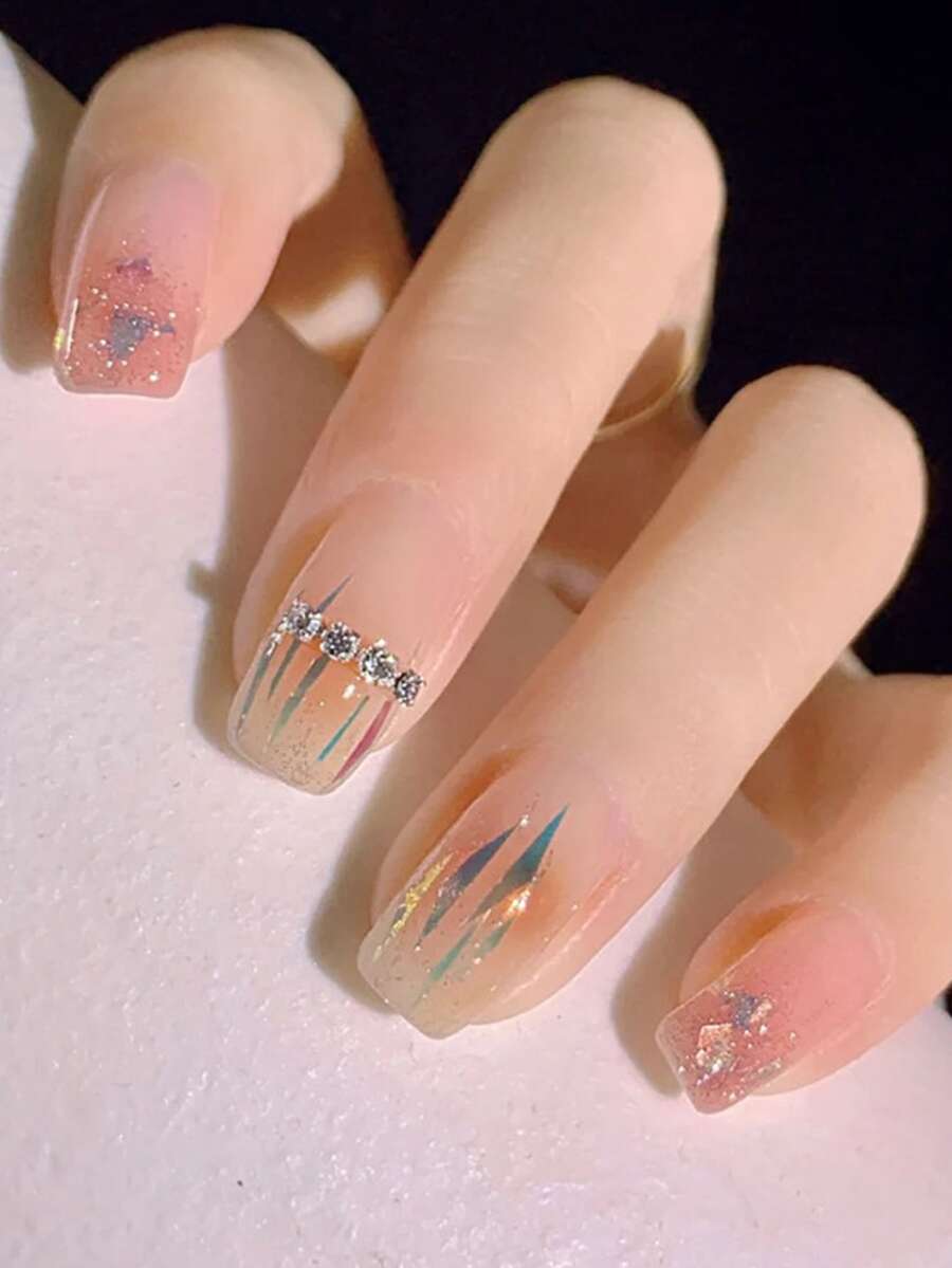 24 piezas cuadrado 3d con diseño de diamante de imitación Uña postiza & 1 hoja cinta
