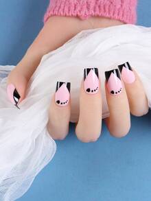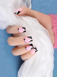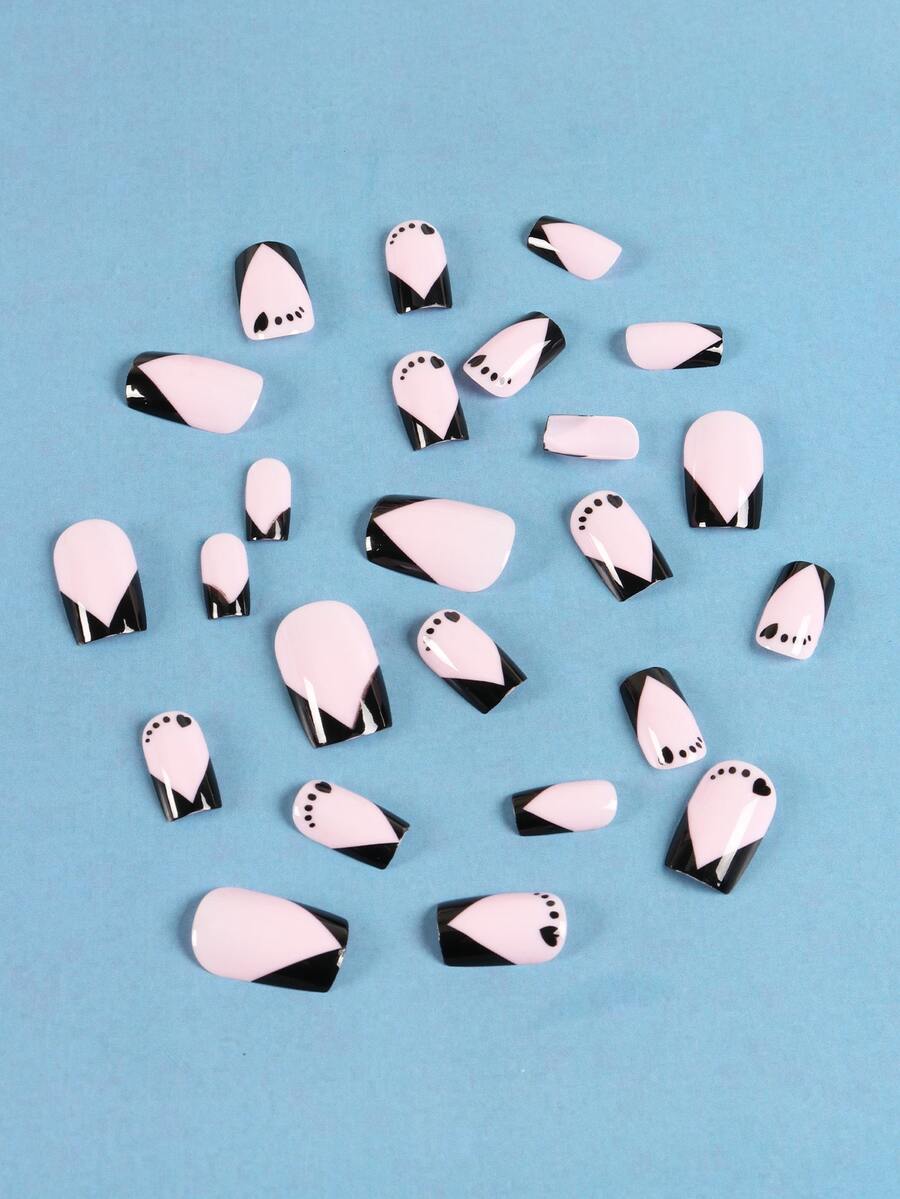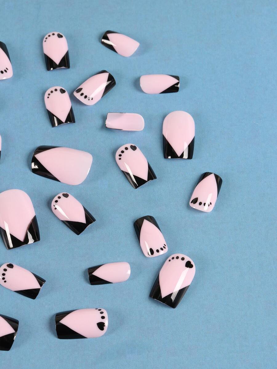 24 piezas cuadrado con estampado de corazón Uña postiza & 1 hoja cinta