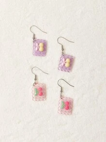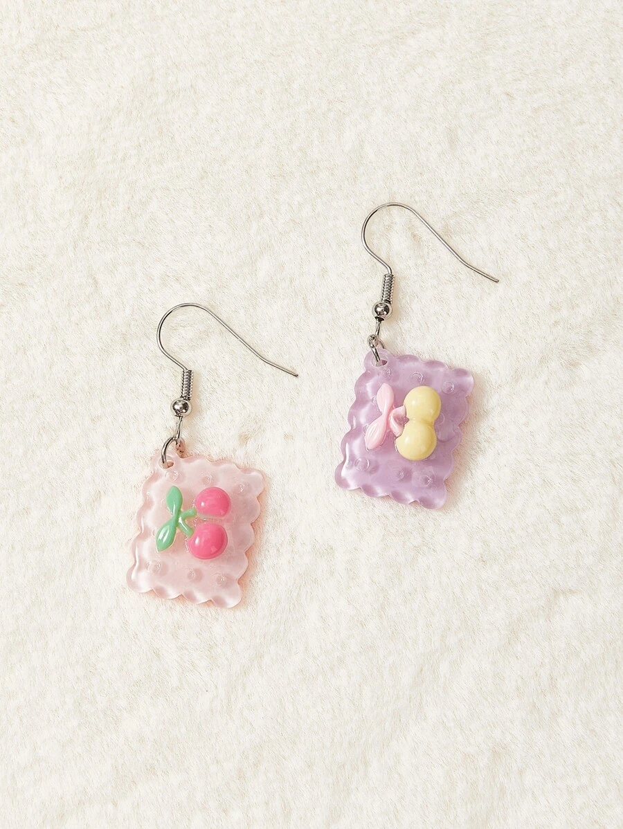 Kawaii 2 pares Pendientes largos con diseño de cereza ribete en abanico