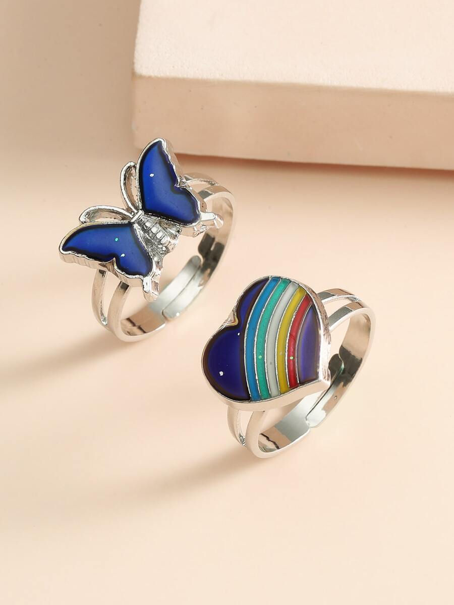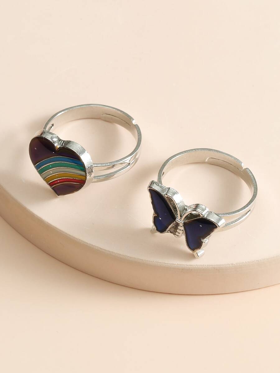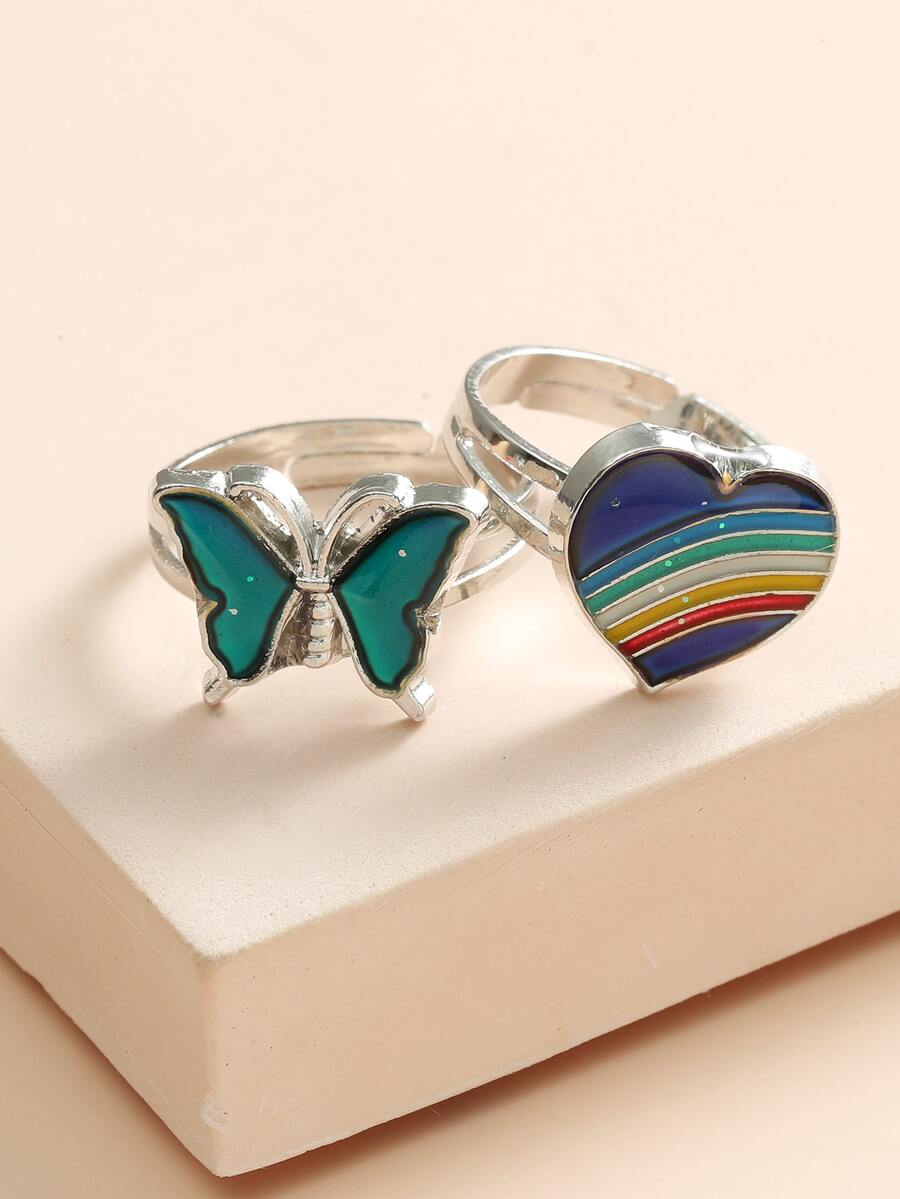 2 piezas Anillo con diseño de mariposa