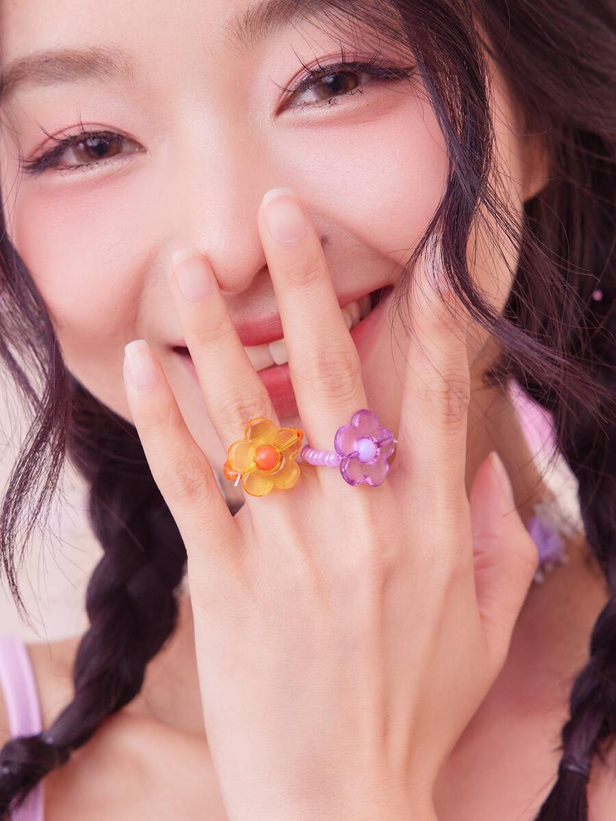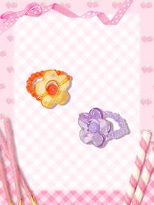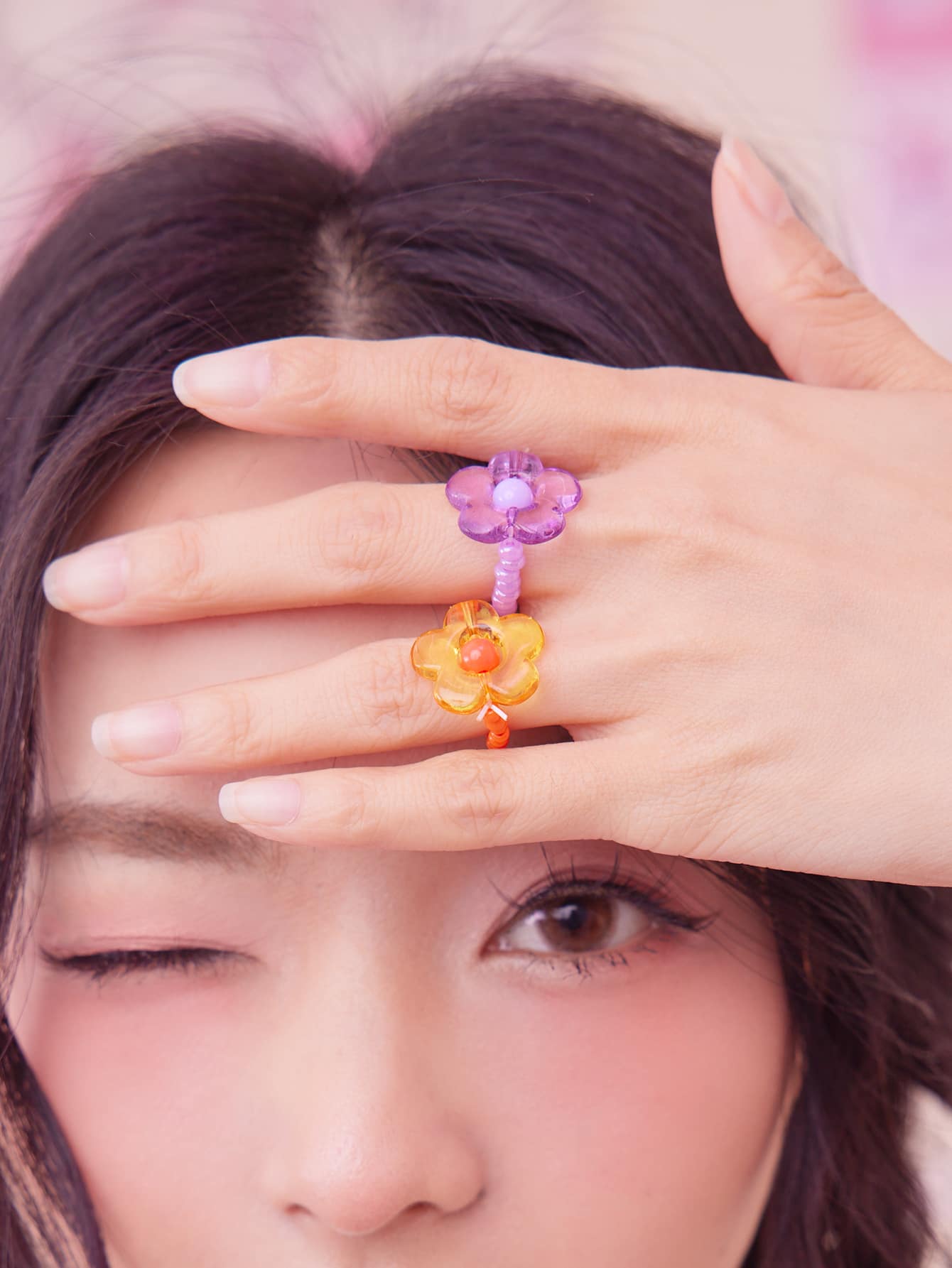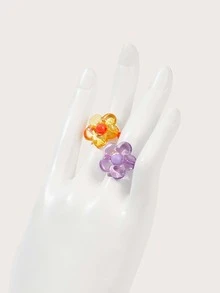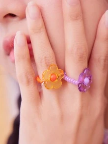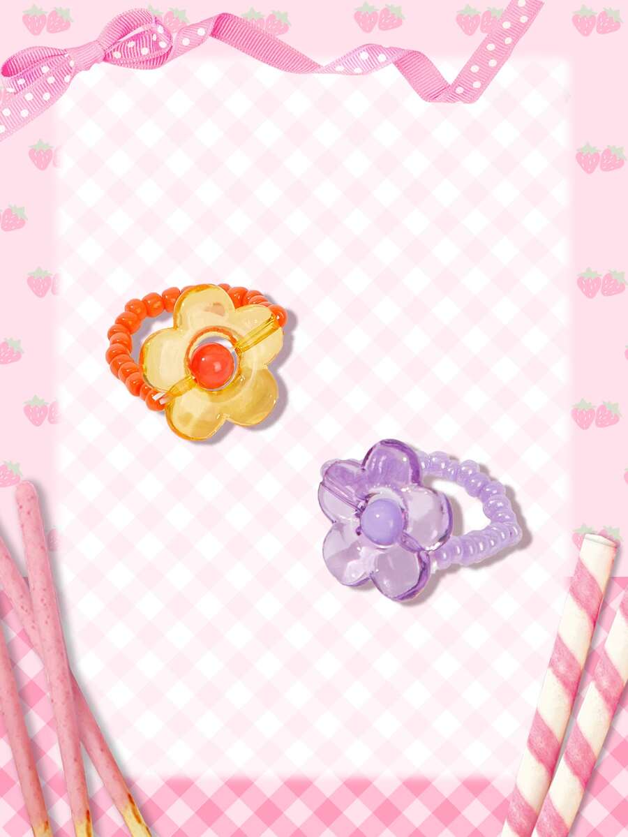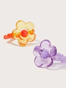Kawaii 2 piezas Anillo con con diseño cuenta floral
