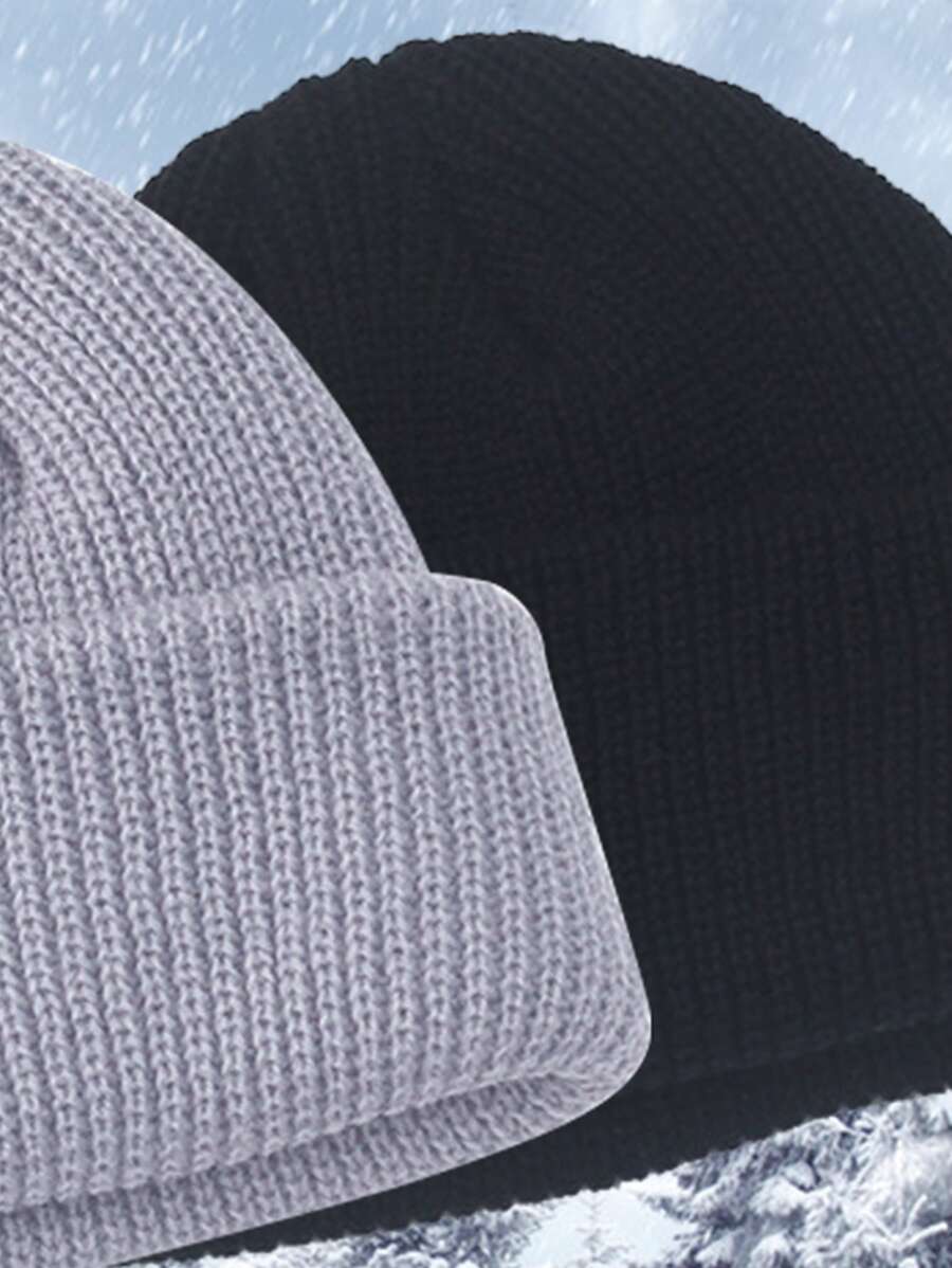 2 piezas Gorro con puños de punto liso para hombre para la vida diaria
