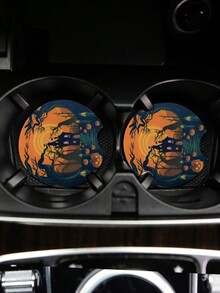 María Zavoychinskiy 2 piezas Posavasos de coche con patrón de Halloween