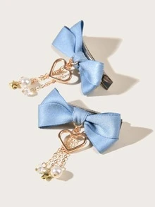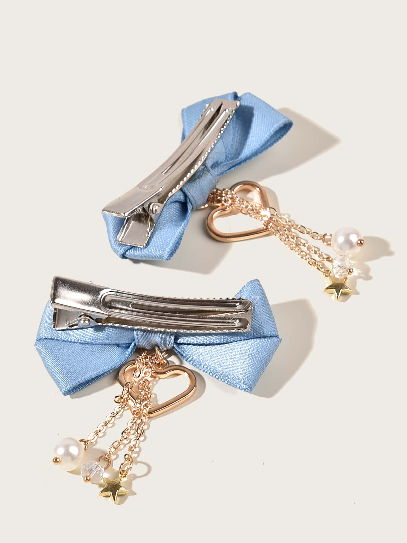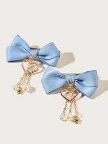 2 Unids/set De Pinza Para El Pelo Con Lazo De Tela Azul Hecha A Mano Para Mujer, Adecuada Para Uso Diario Y De Fiesta