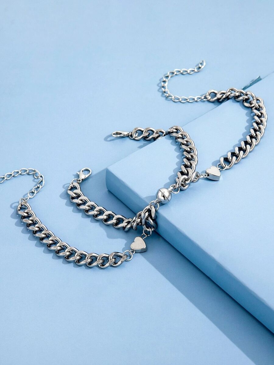 2 Piezas Brazalete De Cadena Con Decoración De Corazón