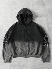 Street Life Sudadera con capucha con cremallera y estampado de strass de moda casual para hombre, primavera/otoño