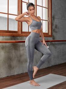 Conjunto de Yoga inconsútil, 2 piezas, traje deportivo entrecruzado sin espalda, mallas que abrazan la cadera