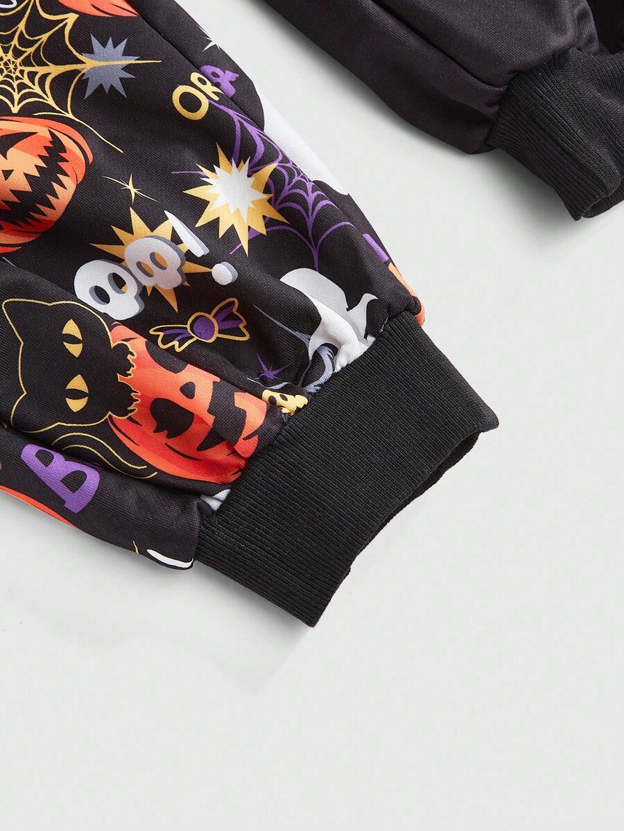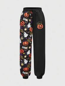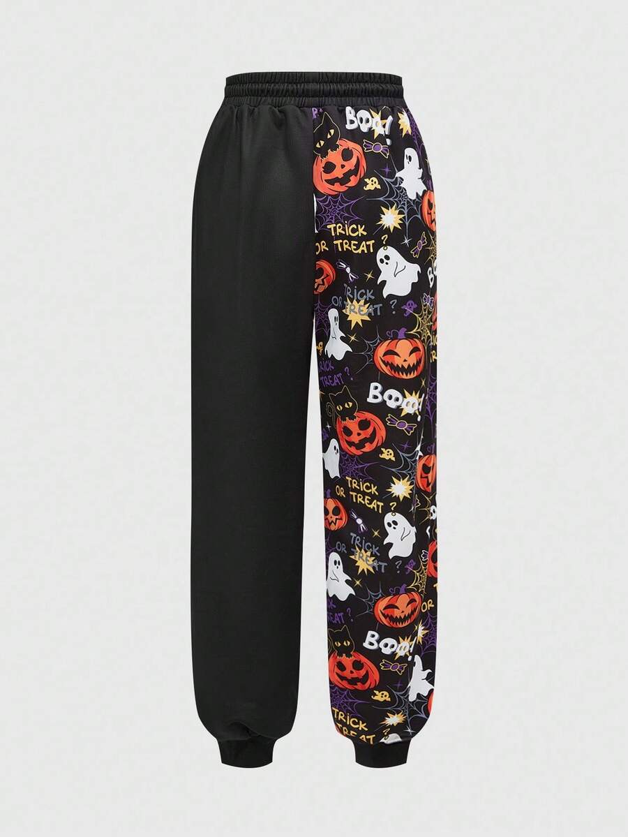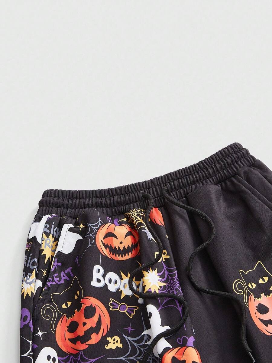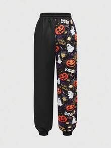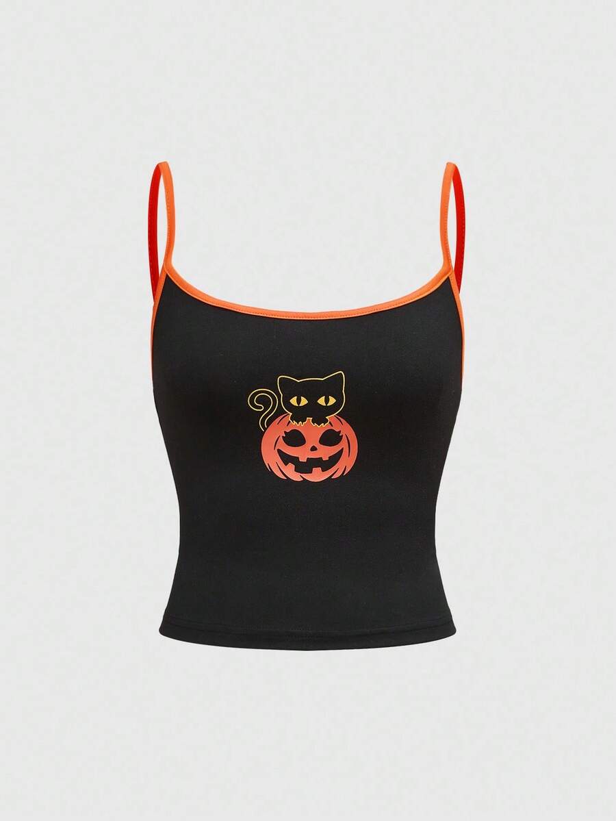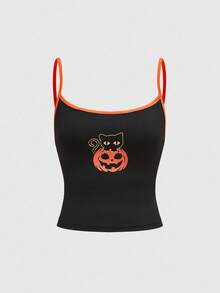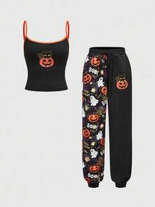 Set de 2 piezas con parte superior de tirantes y pantalón de chándal con estampado de calabaza y fantasma de Halloween