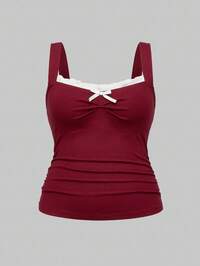 Top De Tirantes Con Encaje Y Contraste Para Mujeres Plus Size