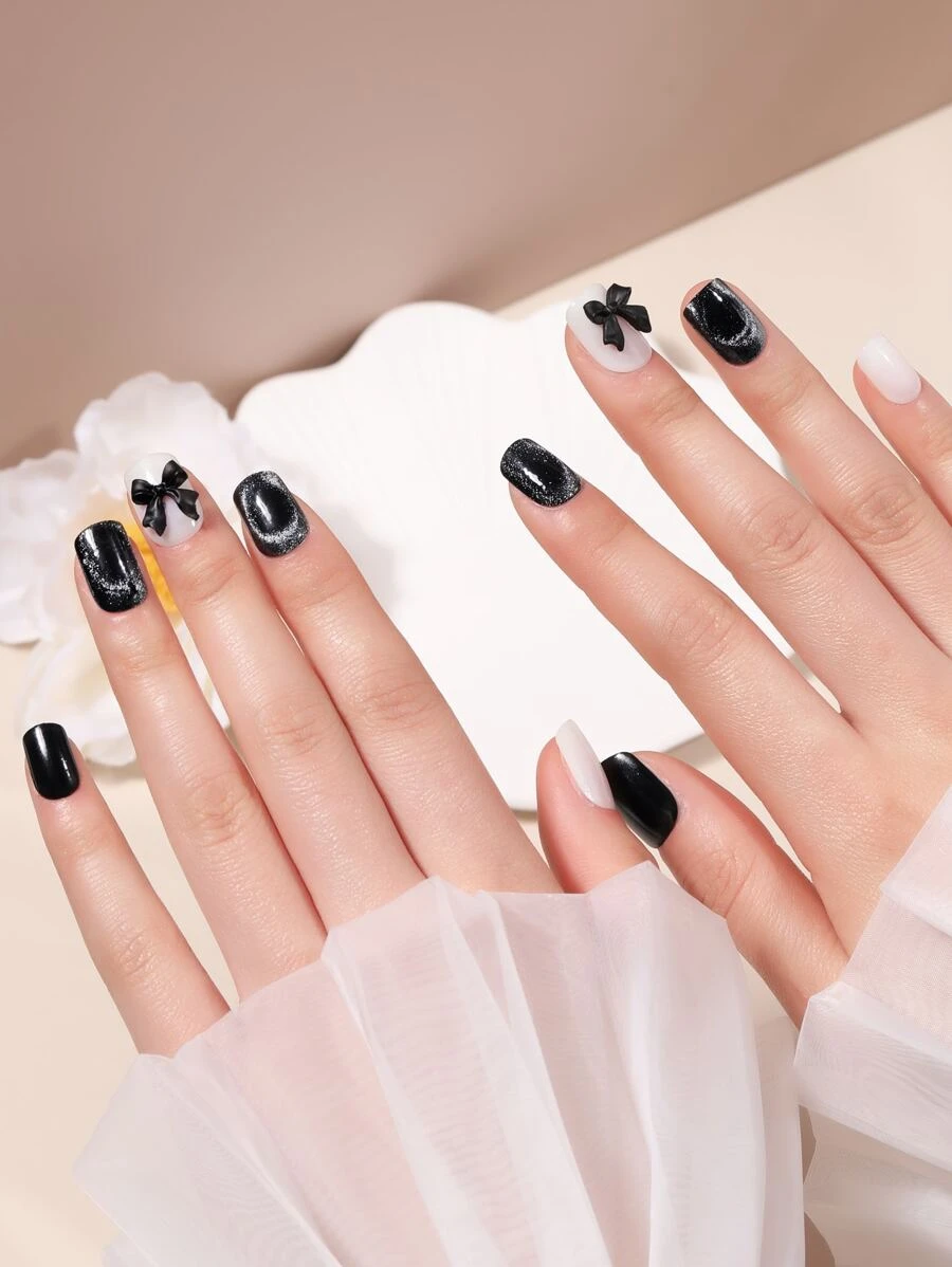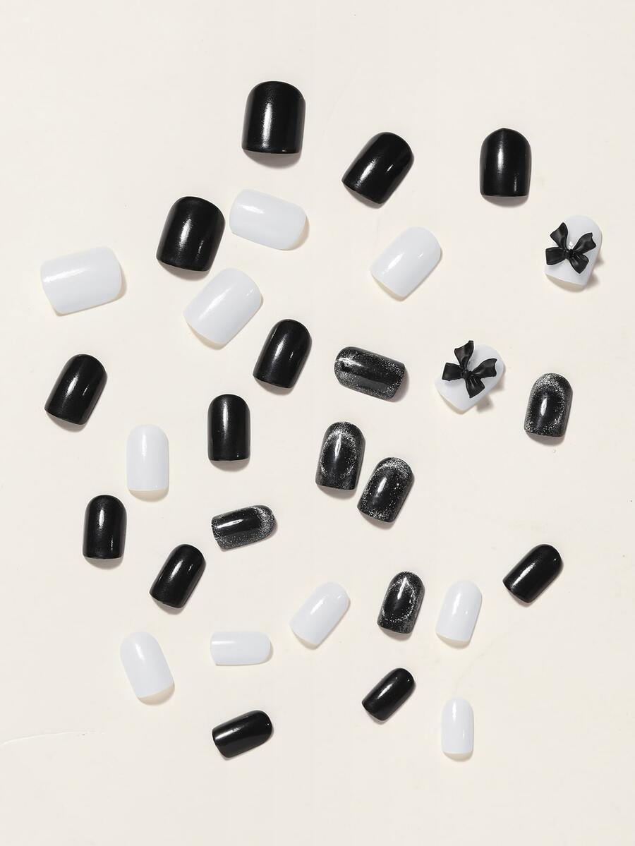 LULAA 30 piezas Uñas postizas cuadradas corto & 1 pieza lima de uñas & 1 hoja cinta