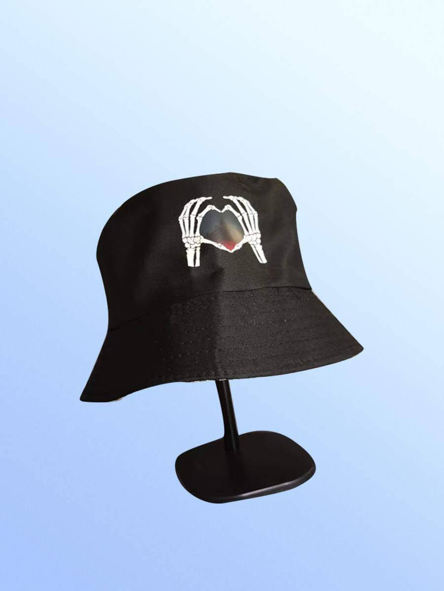 31416ly Sombrero cubo esqueleto mano & con estampado de corazón
