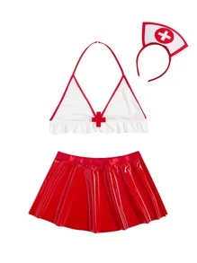 3 piezas Set disfraz de enfermera unido en contraste ribete con fruncido