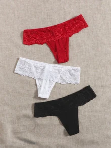 3 piezas Set bragas con encaje en contraste