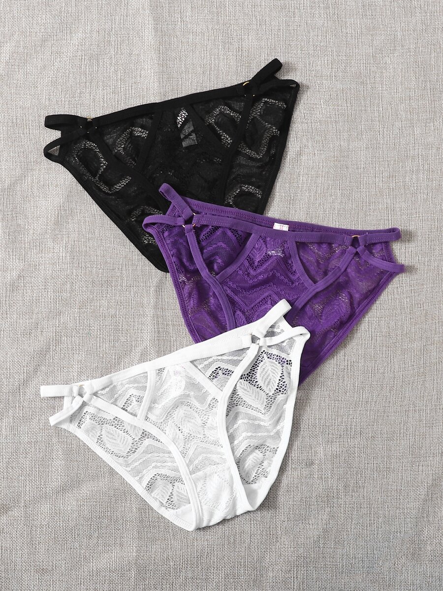3 piezas Set bragas con encaje en contraste