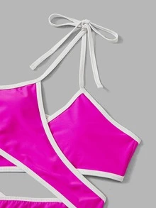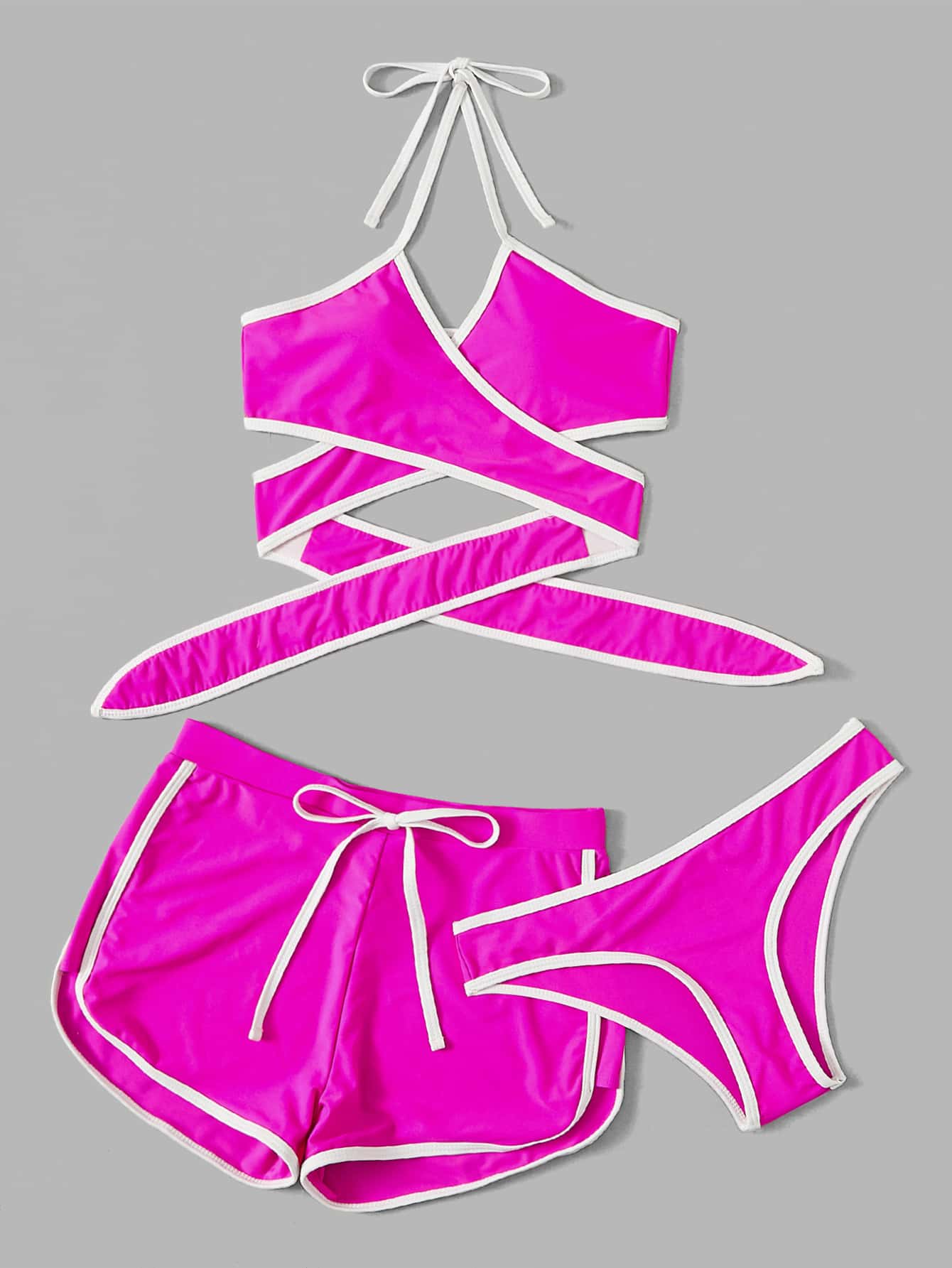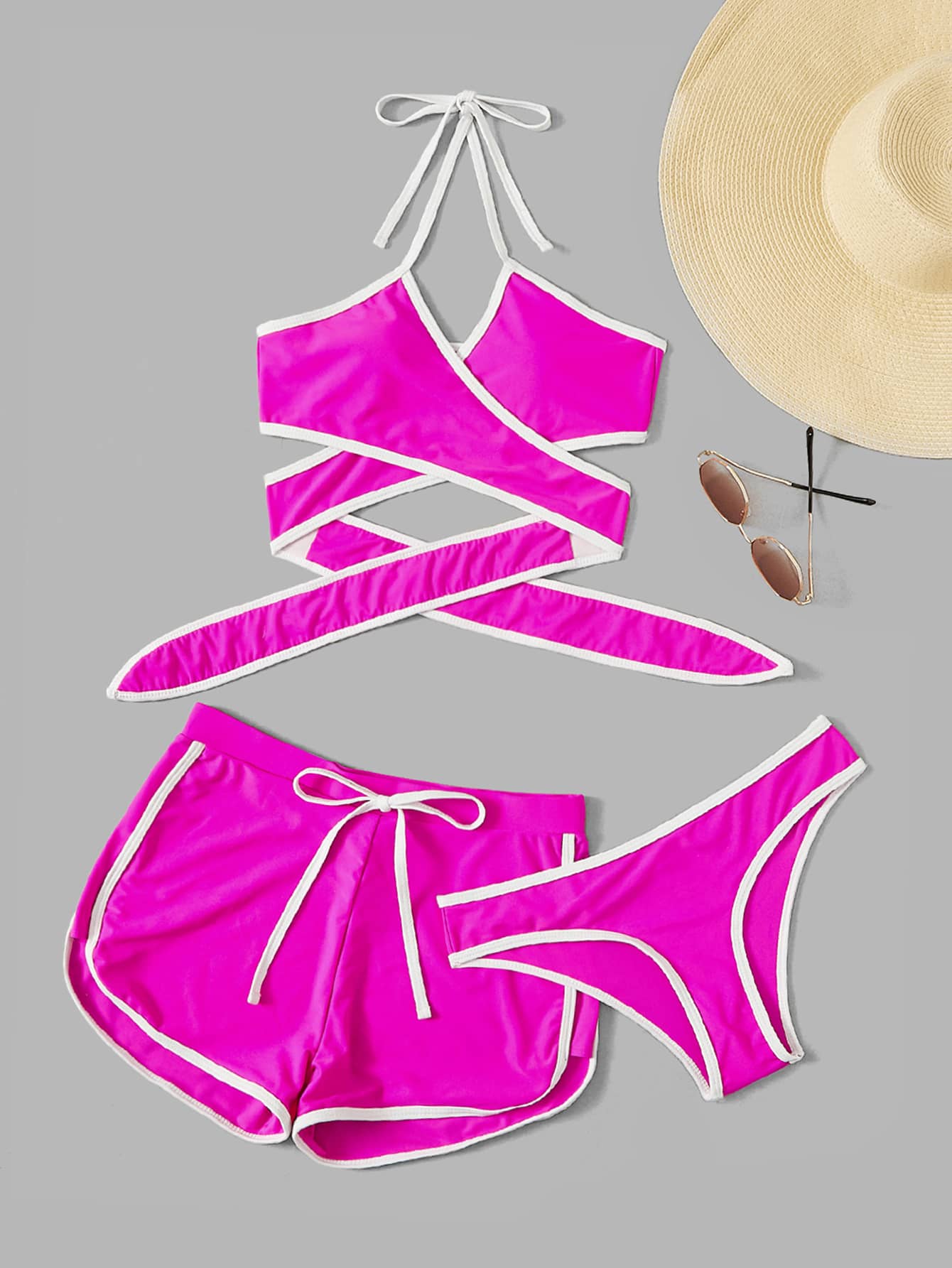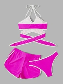 3 paquetes de Bikini con nudo al cuello y estampado de contraste con sujetador + pantalón corto