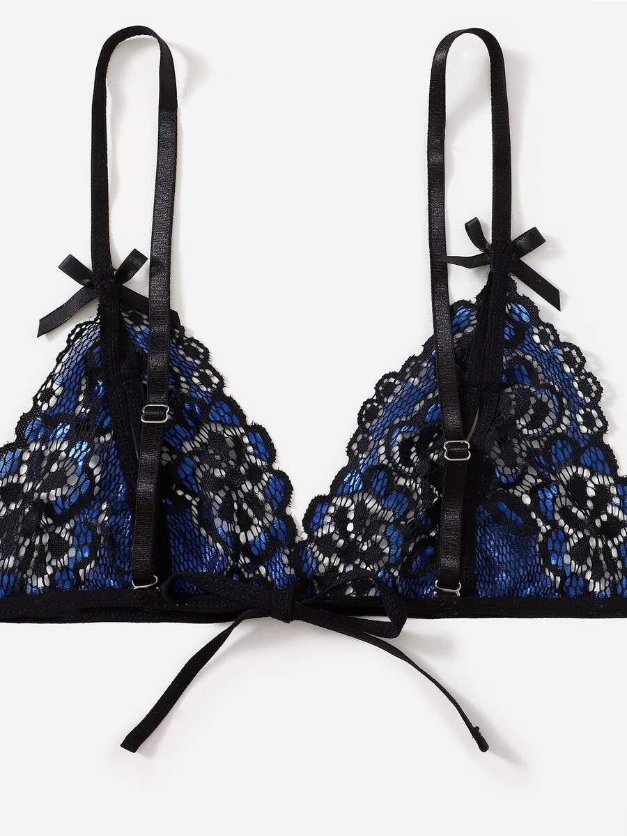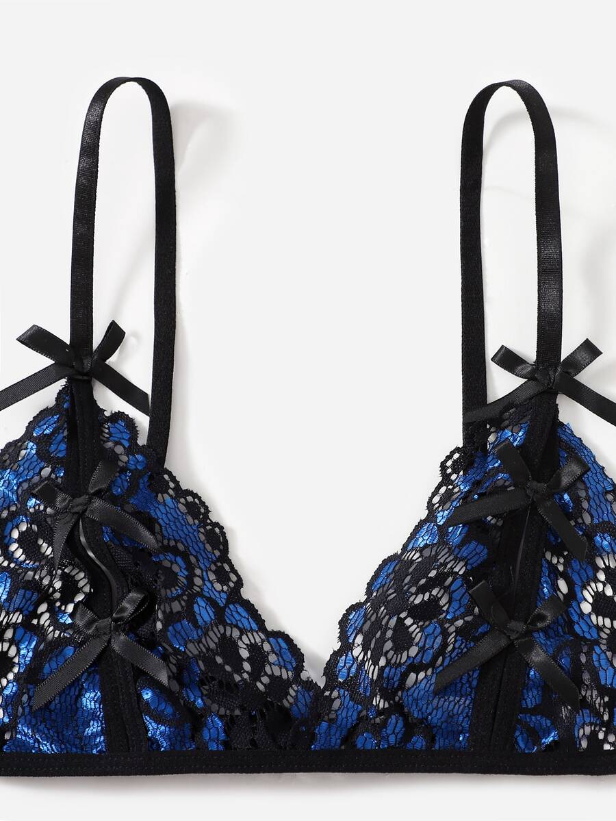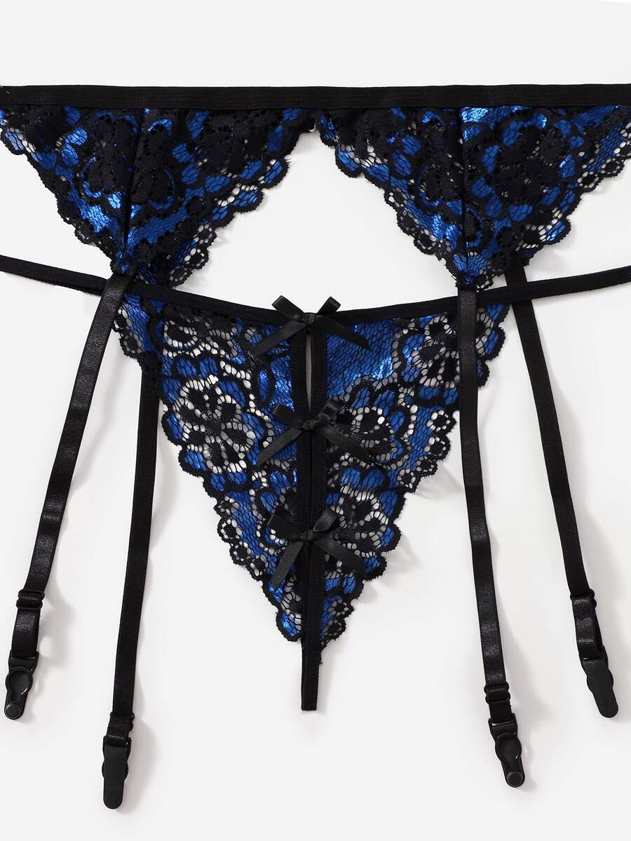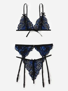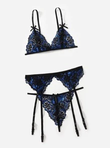 3 piezas Set de lencería con encaje floral con liga